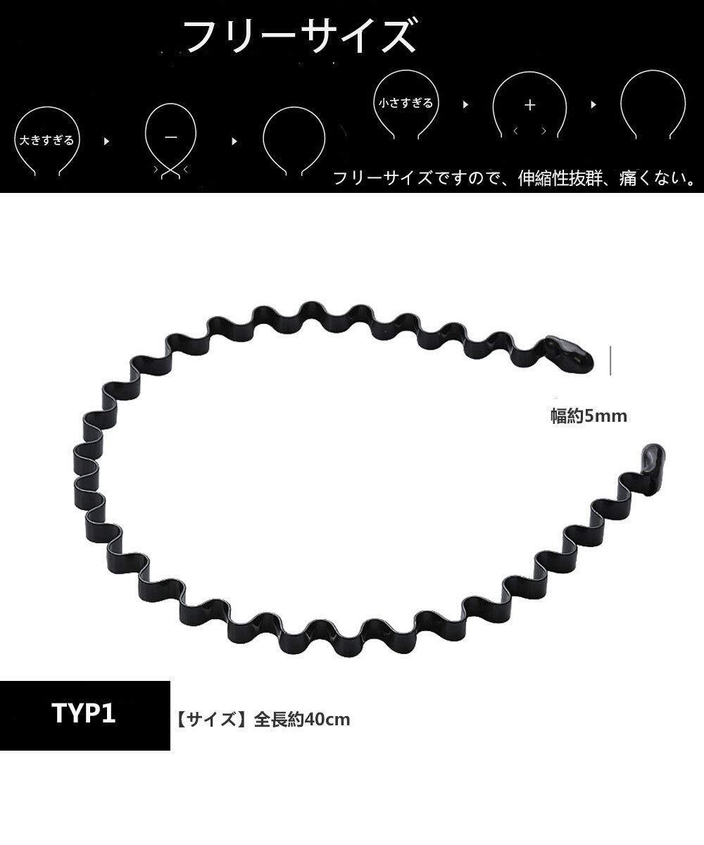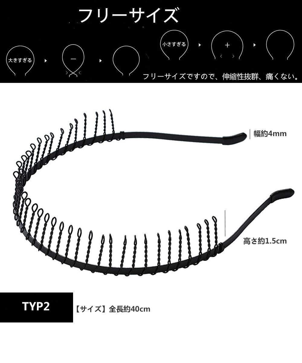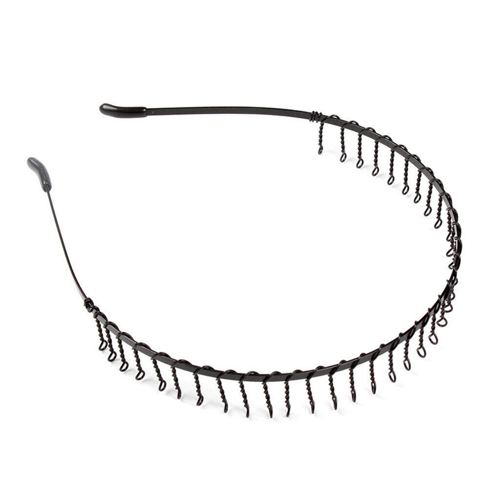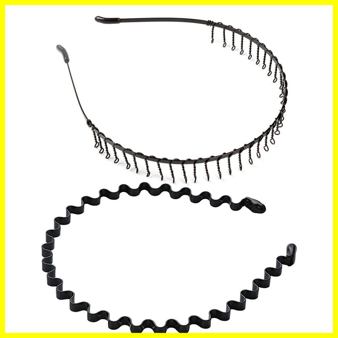 shefun メンズ カチューシャ スプリング ヘアバンド 鉄 波型 くし付き 滑り止め 痛くない 黒 シンプル 前髪 髪飾り 2本セット JP159