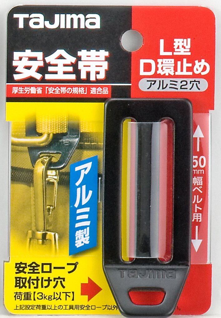 タジマ 安全帯 L型D環止め(アルミ2穴・ブラック) ベルト幅50mm用 軽量なアルミ製 安全ロープ取り付け穴付 TA-LAD2BK