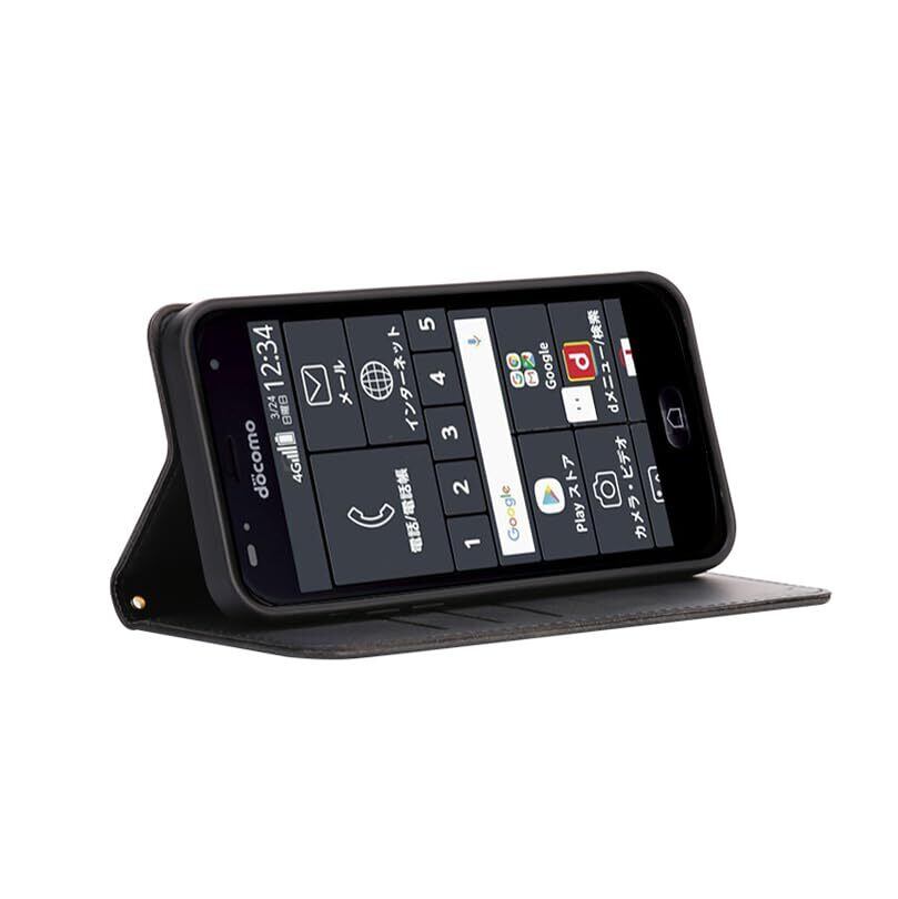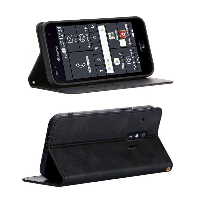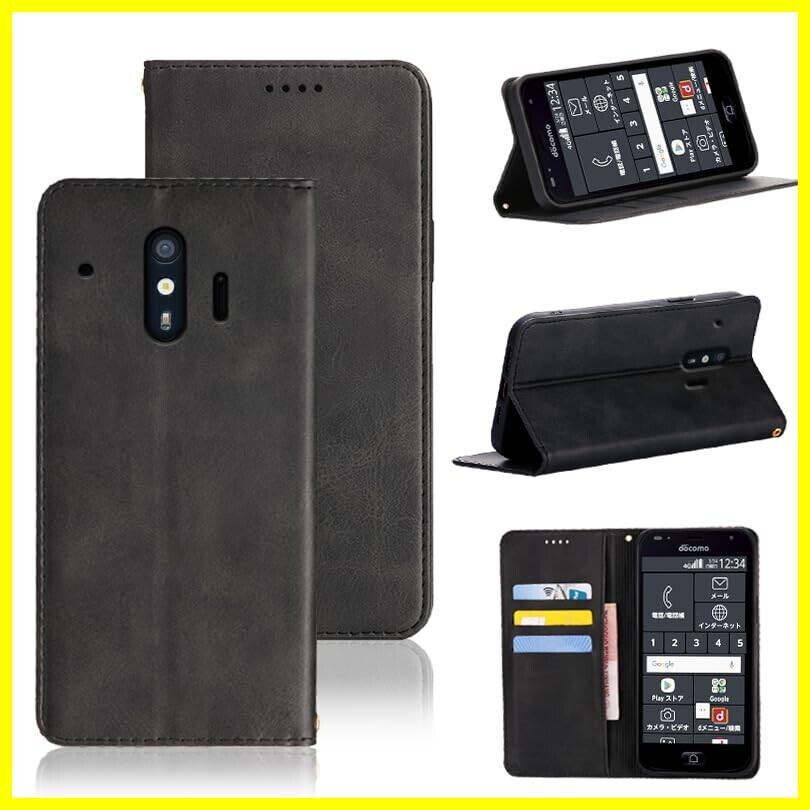 適用 らくらくスマートフォン me F-01L / F-42A ケース 手帳型 カバー PUレザー カード収納 財布型 耐衝撃 ケース マグネット スタンド機能付き 5色 (ブラック)