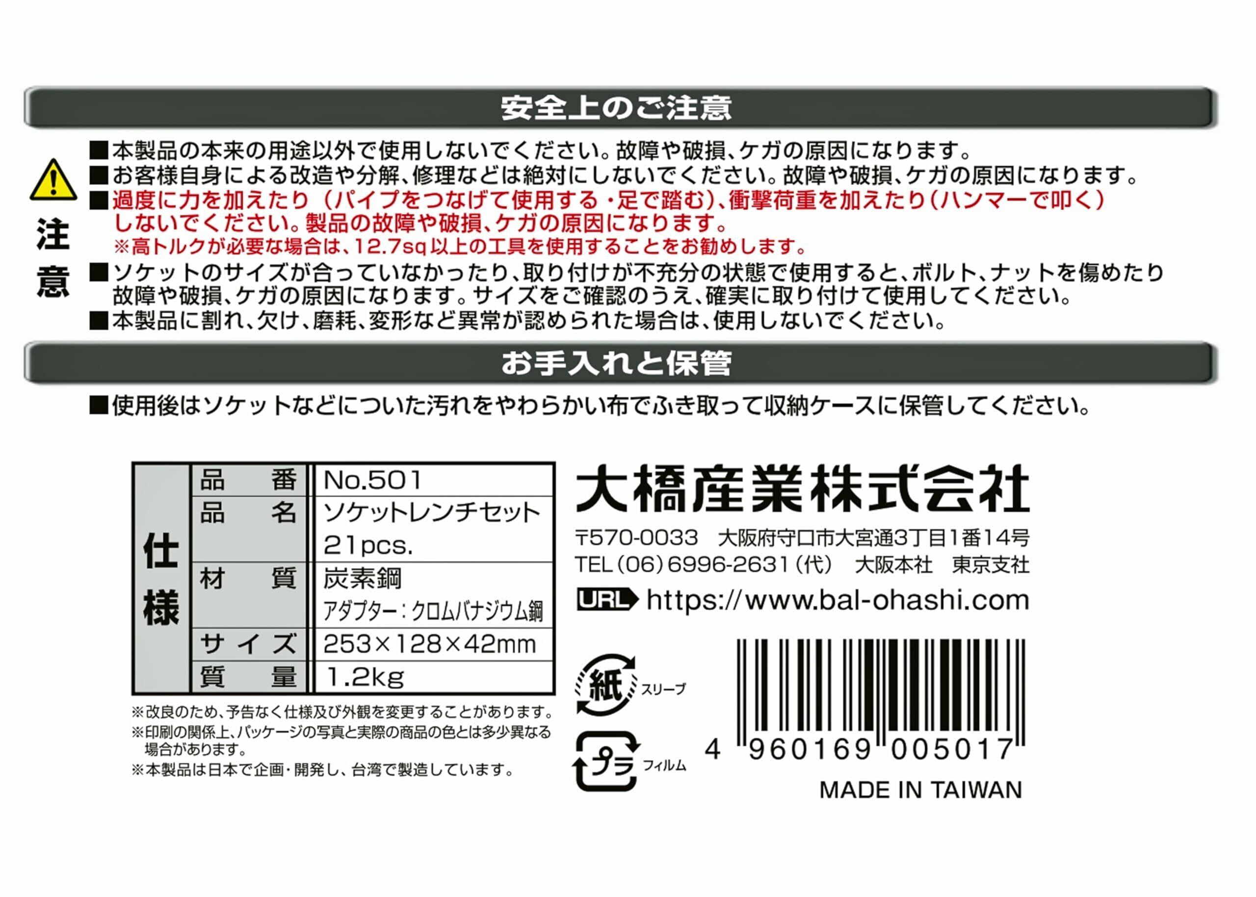 BAL(大橋産業) 車 整備 工具 ソケット ラチェット レンチセット 21PC No.501