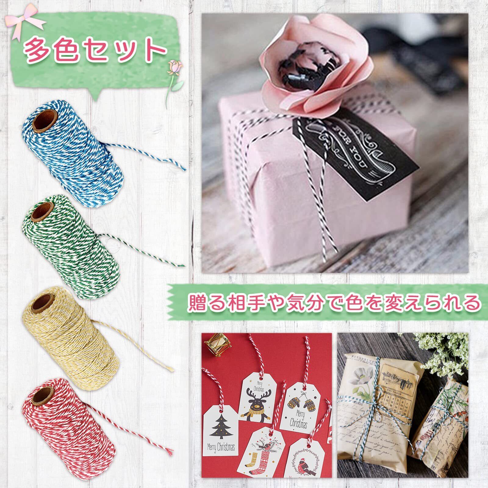 【手作り品の材料に使える】 カラフルな紐は、ラッピングだけじゃなく色んな用途に使えます。クリスマスリース作りや、オーナメントの飾りつけ、お正月飾り、子供の作品展示などなど。材料の1つとして常備してください。