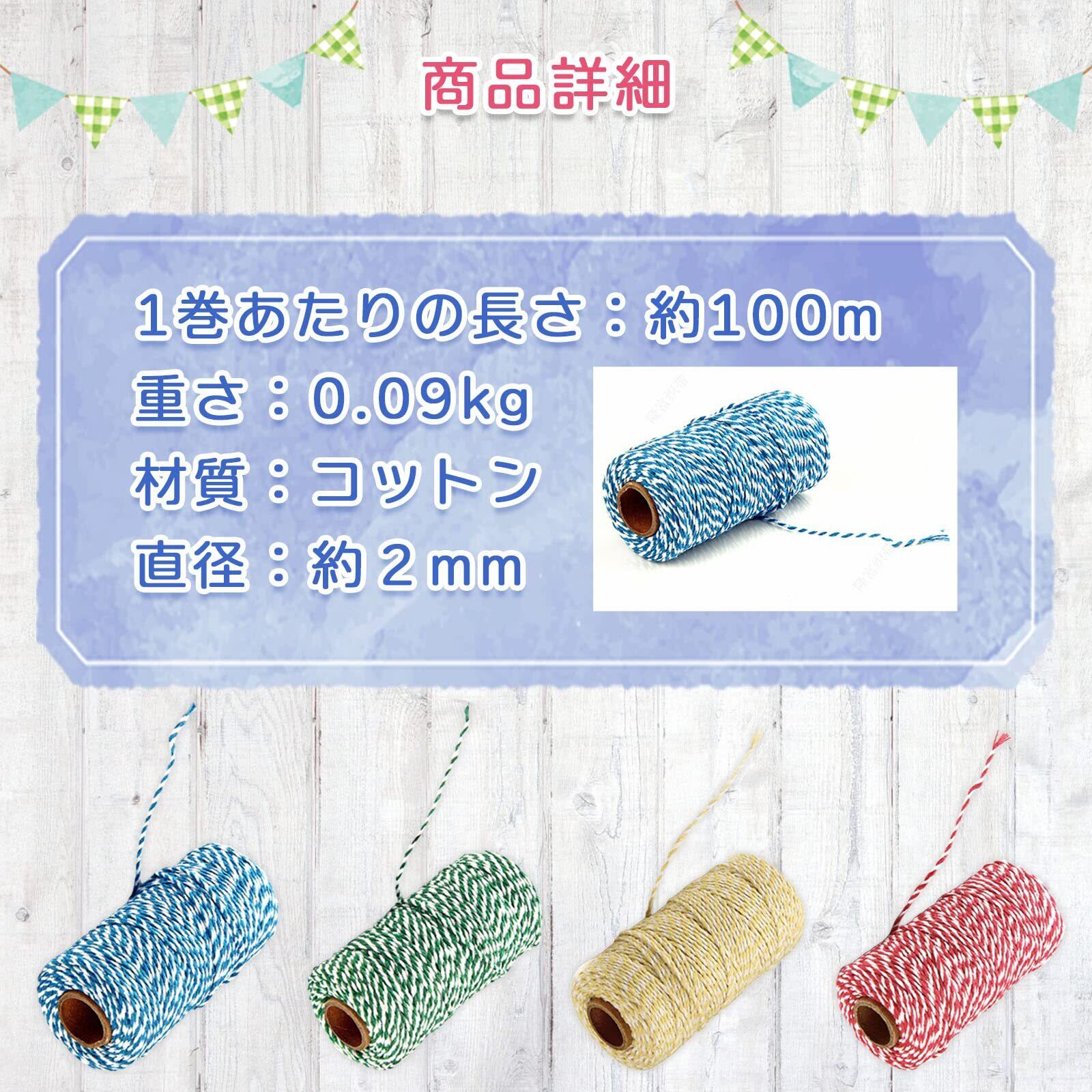 ラッピング ロープ ひも 包装 梱包 プレゼント ギフト 装飾 綿 コットン 100m (5色セット)