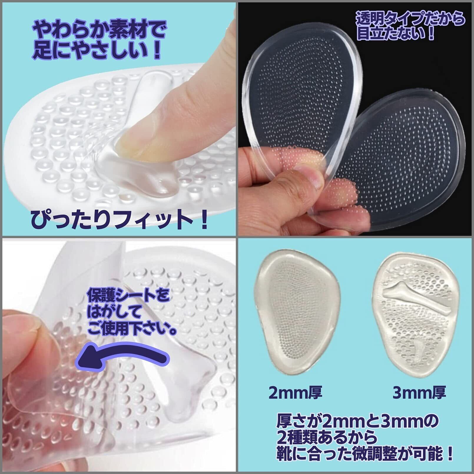 (APOSITV) つま先 インソール ジェル 中敷き パンプス 透明 2mm 3mm 2セット クッション 前滑り防止 (2mm 3mmセット)