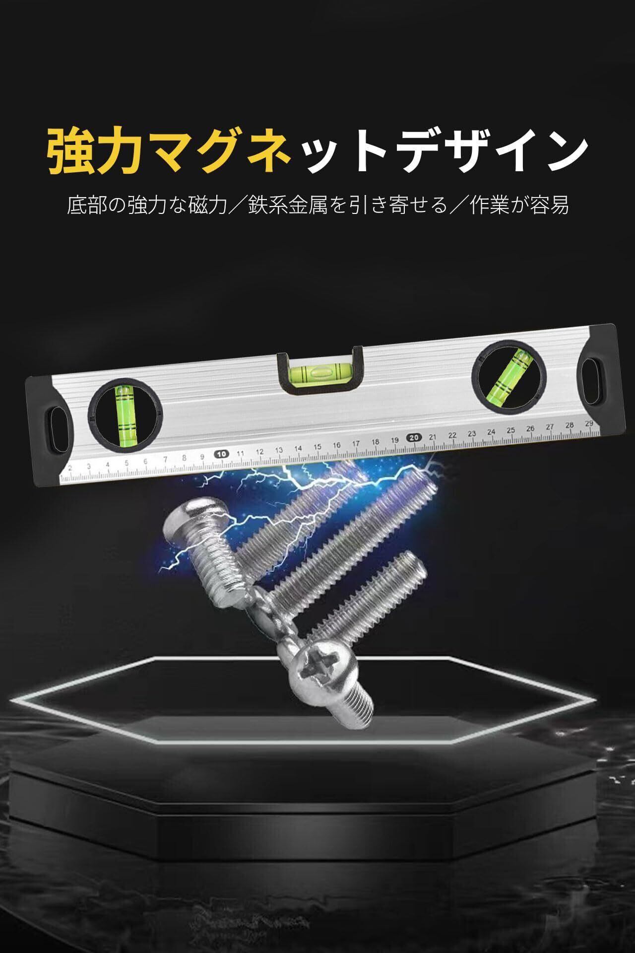 水平器 マグネット 300mm 水準器 磁性で吸着しさしがね 傾斜計 高精度 レベル 測定器 測定工具 スケール建設大工職人用 物差し 距離測定器 室内飾り測定用 大工道具 建築現場 土木 日曜大工やDIY作業に (シルバー)