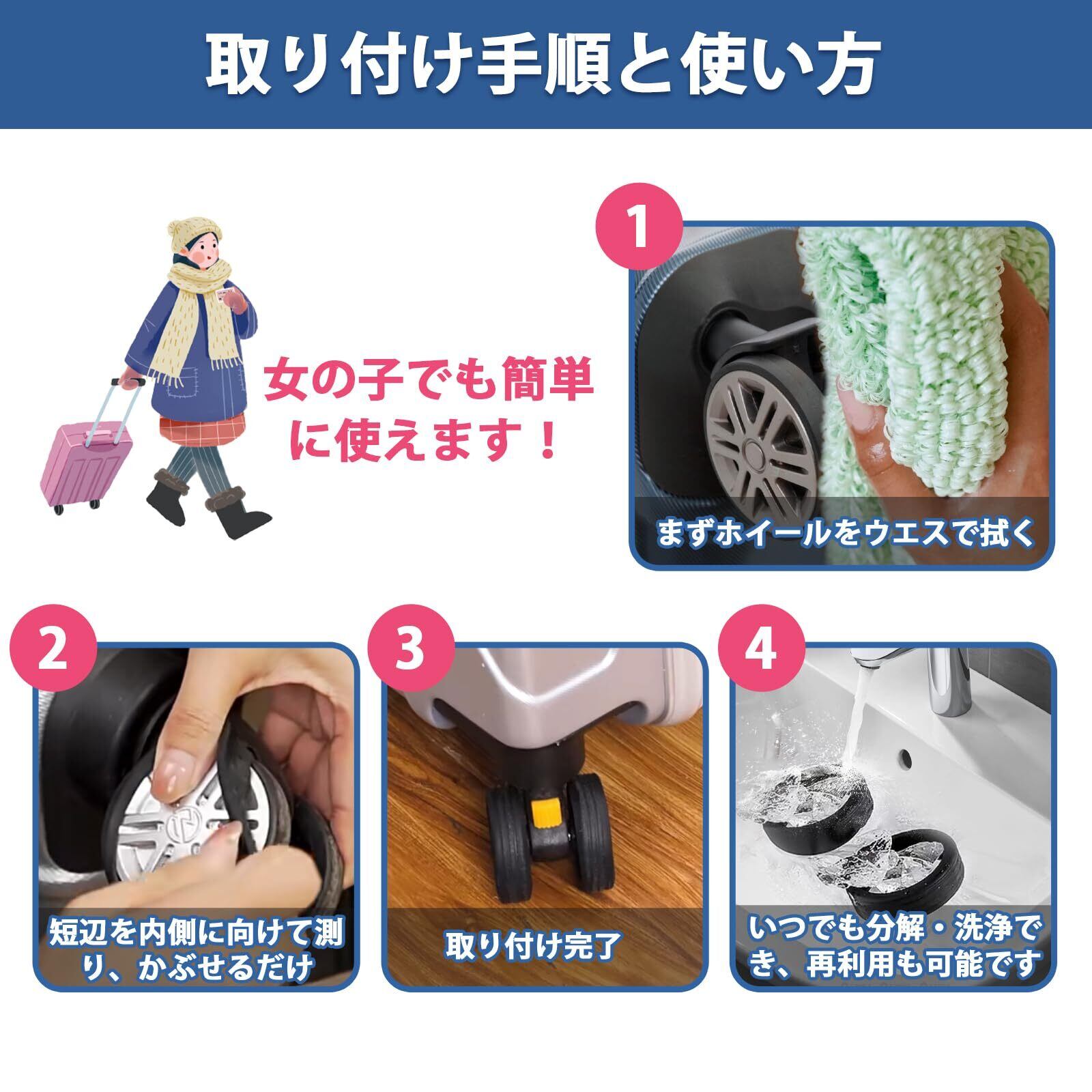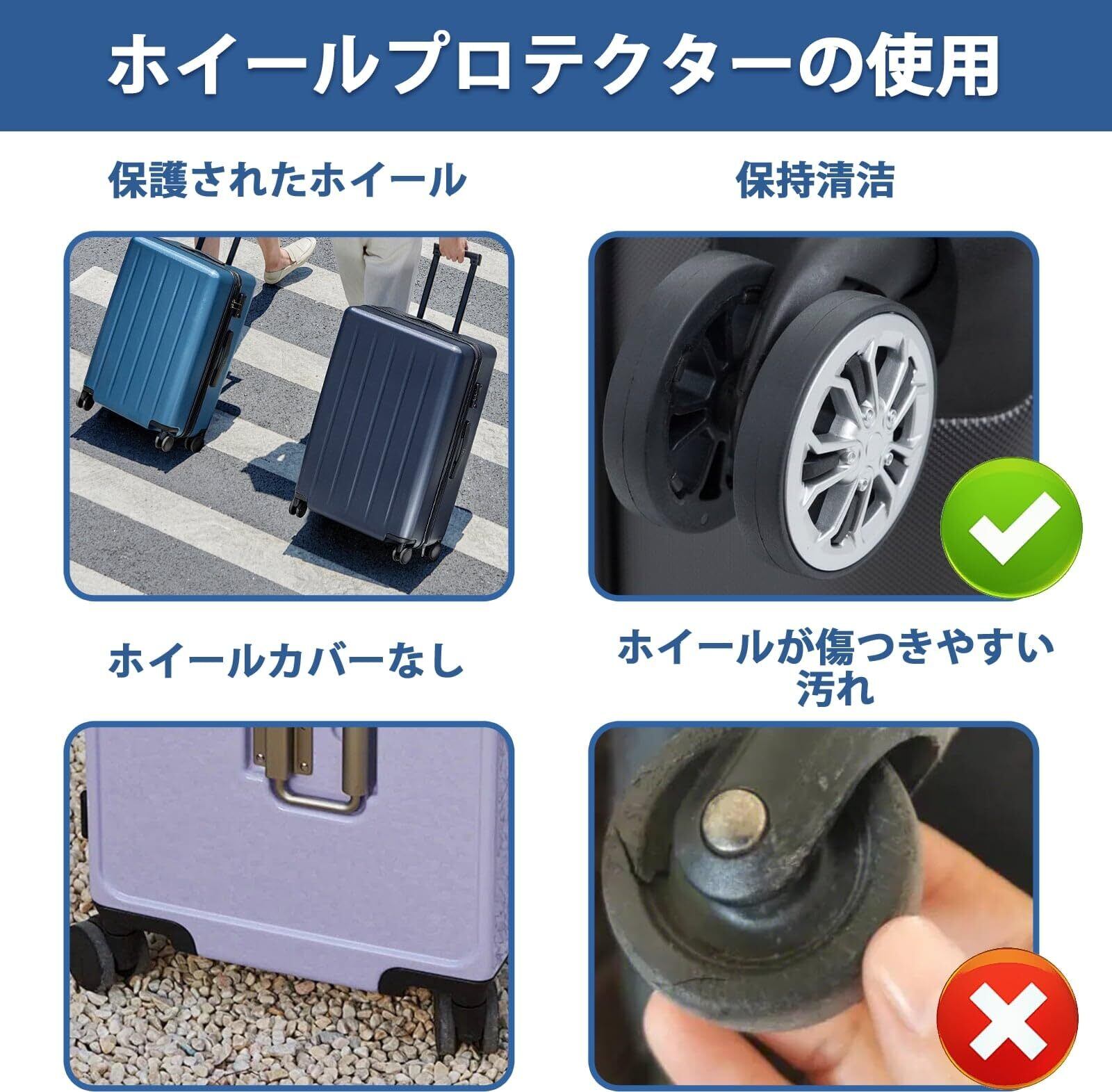 【スタイリッシュでユニーク】当社の斬新なラゲッジホイールカバーは、荷物を保護するだけでなく、荷物にパーソナライズされたロゴを追加し、ラゲッジカルーセルで荷物を見つけやすくします。 キャスターカバーはオフィスの回転椅子にも適しています。