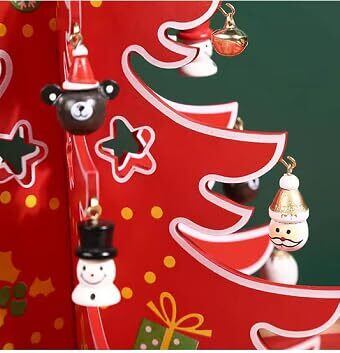 JiangMuXin木製クリスマスツリー テーブル 木製 木製クリスマスツリー ミニツリー ファッション 北欧 小型 22cm ミニツリー DIY クリスマス プレゼント キッズ おもちゃ クリスマス 装飾 装飾品 インテリア (赤)