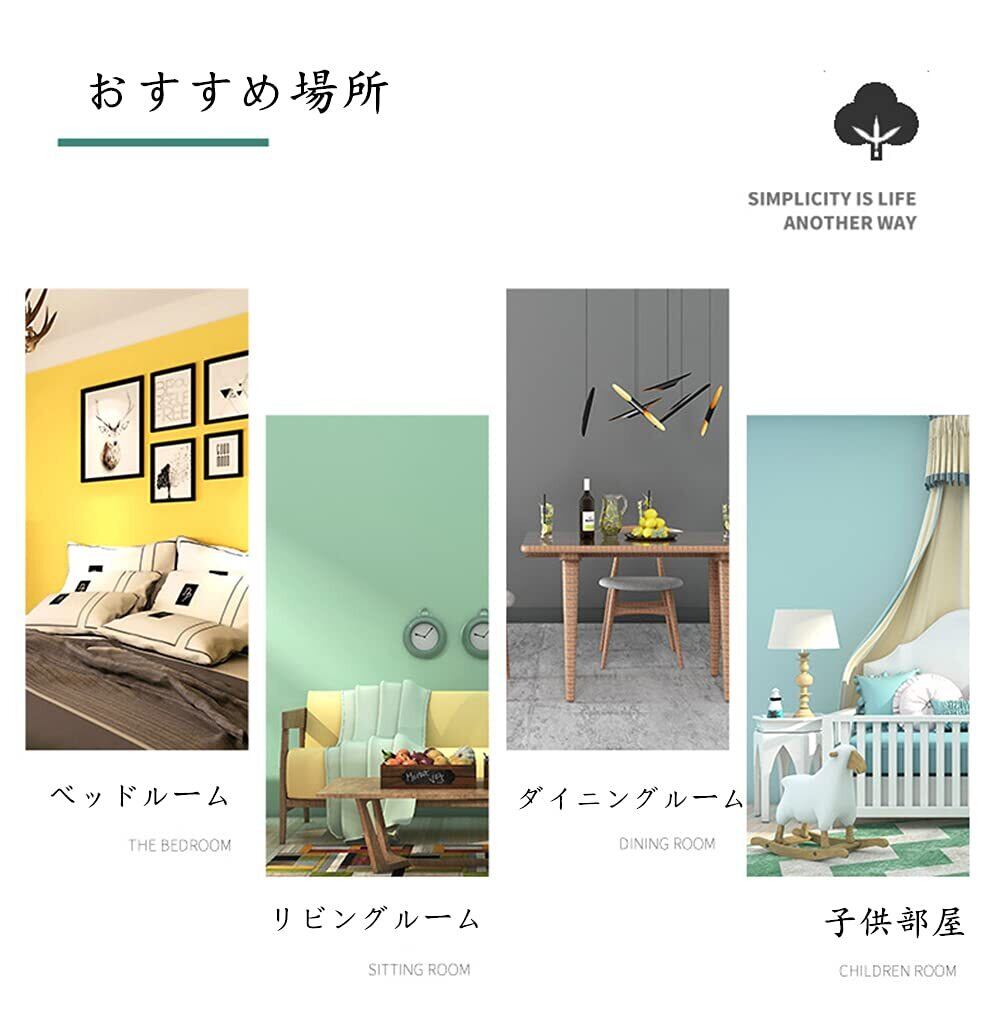 壁紙シール:シールタイプの壁紙は裏面にのりあり、他の接着材や目地材が不要、簡単に剥がして貼ればいいです。適度な粘着力だから失敗しても心配しないです!貼ってすぐなら貼り直しができます。剥がせる壁紙なので、はがしても粘着剤が残らないので、賃貸の部屋でも気軽に利用できます。 ご注意:剥がせるタイプですが、貼る表面の素材によって程度が違います。予めご了承ください。