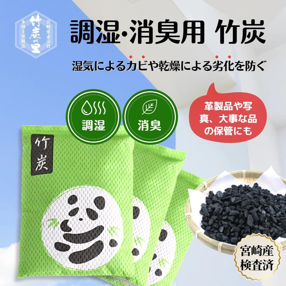 竹炭の里 調湿・消臭用竹炭 3個セット 宮崎県産竹炭 オーガニック孟宗竹 湿気によるカビや乾燥による劣化を防ぐ 革製品 紙製品 写真 精密機械 など湿気と乾燥に弱いモノの保管に くり返し使える