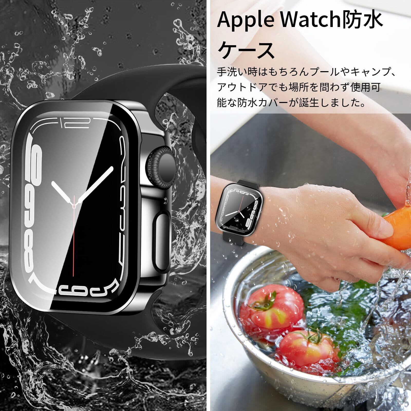 防水仕様:Apple Watchケース特殊加工による防水機能により、 手を洗う時はもちろん汗をかいた時、シャワーを浴びた時にもかかわらずにアップルウォッチをご使用できます。 ※アップルウォッチ本来の防水性能を向上させるものではありません。プールや海などの水場でのご使用時はアップルウォッチの説明に従い、スキューバダイビング、ウォータースキーなど、水圧が高くなったり、所定の水深より深く潜るようなアクティビティはしないでください。