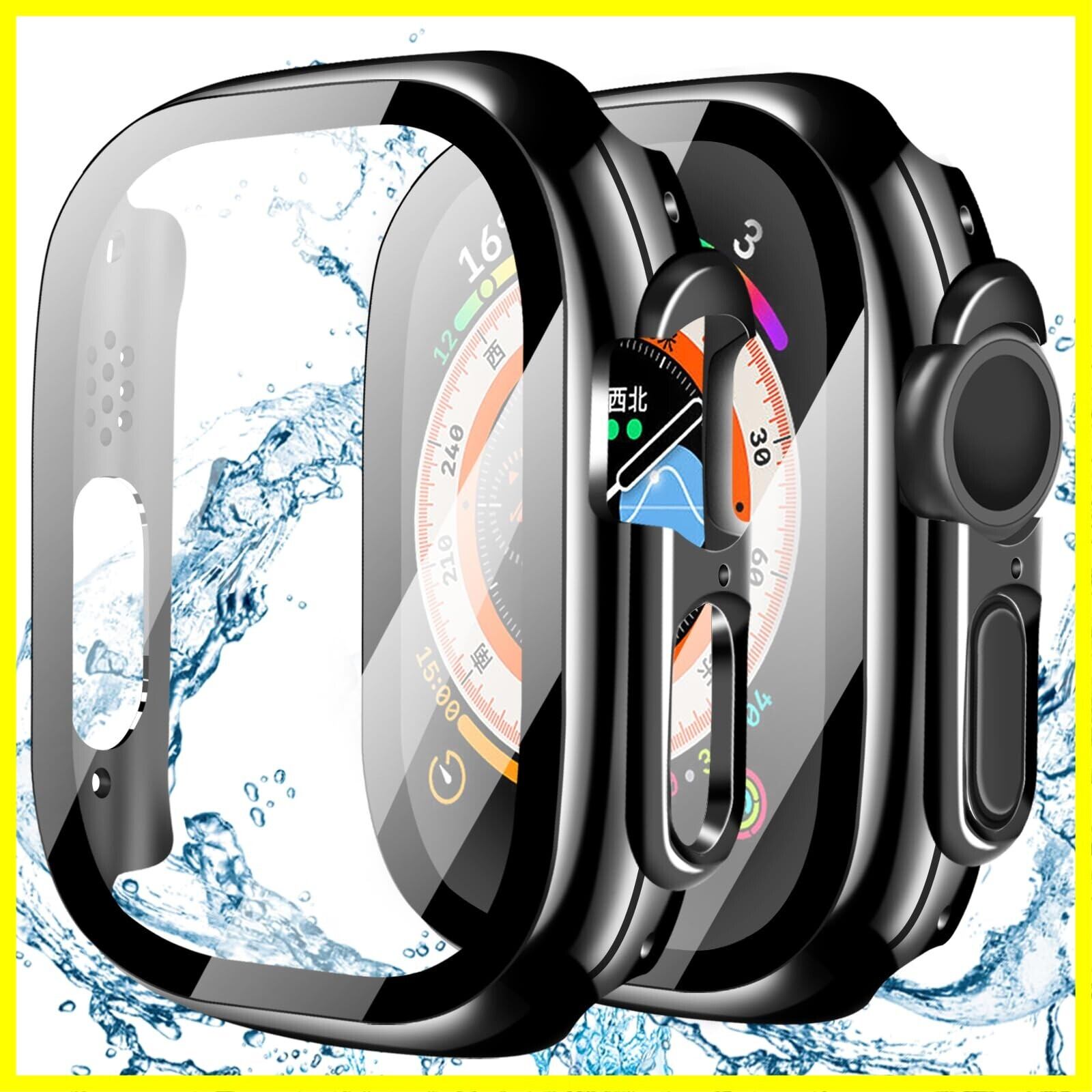 YUGYUG 対応 アップルウォッチ カバー Ultra 3/2/1 アップルウォッチ ケース PC素材 IP68 防水 3D直角エッジデザイン 光沢式 Apple Watch ケース ガラスフィルム 一体型 日本旭硝子材 二重構造 Apple Watch カバー 全面保護 強化ガラス キズ防止(49mm,ブラック)