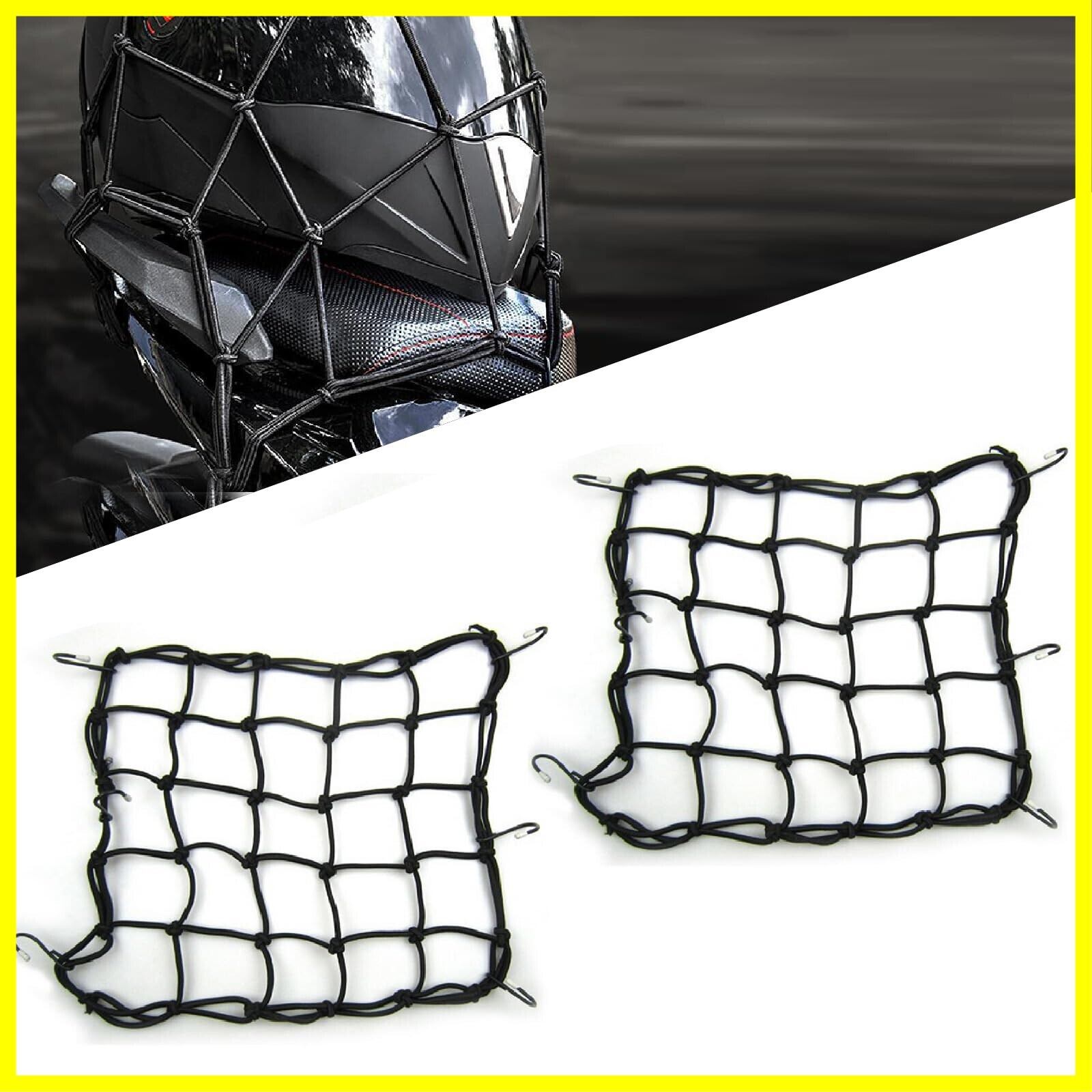 2個 ツーリングネット モーターサイクル旅行ネット バイクネット 400x400mm ヘルメットネット 伸縮性 荷物固定 バイク用品 落下防止ネット カーゴネット 荷崩れ防止 フック付き