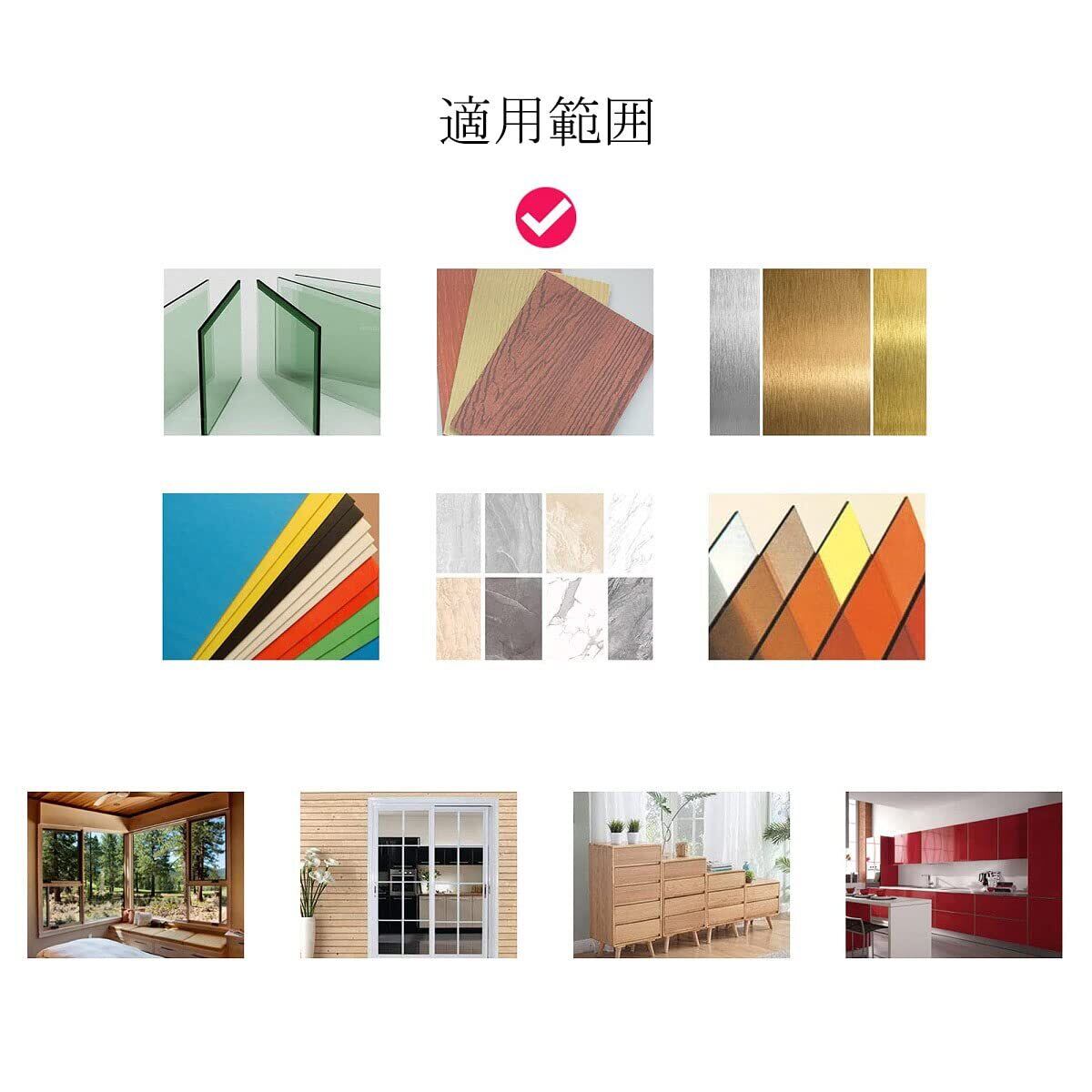 【適用範囲】窓、網戸、引き出し、押入れ、ドア、下駄箱、本棚など使用用途は様々。スライディングドア、ガラスドア、キャビネットドア、サッシ戸などをおすすめです。