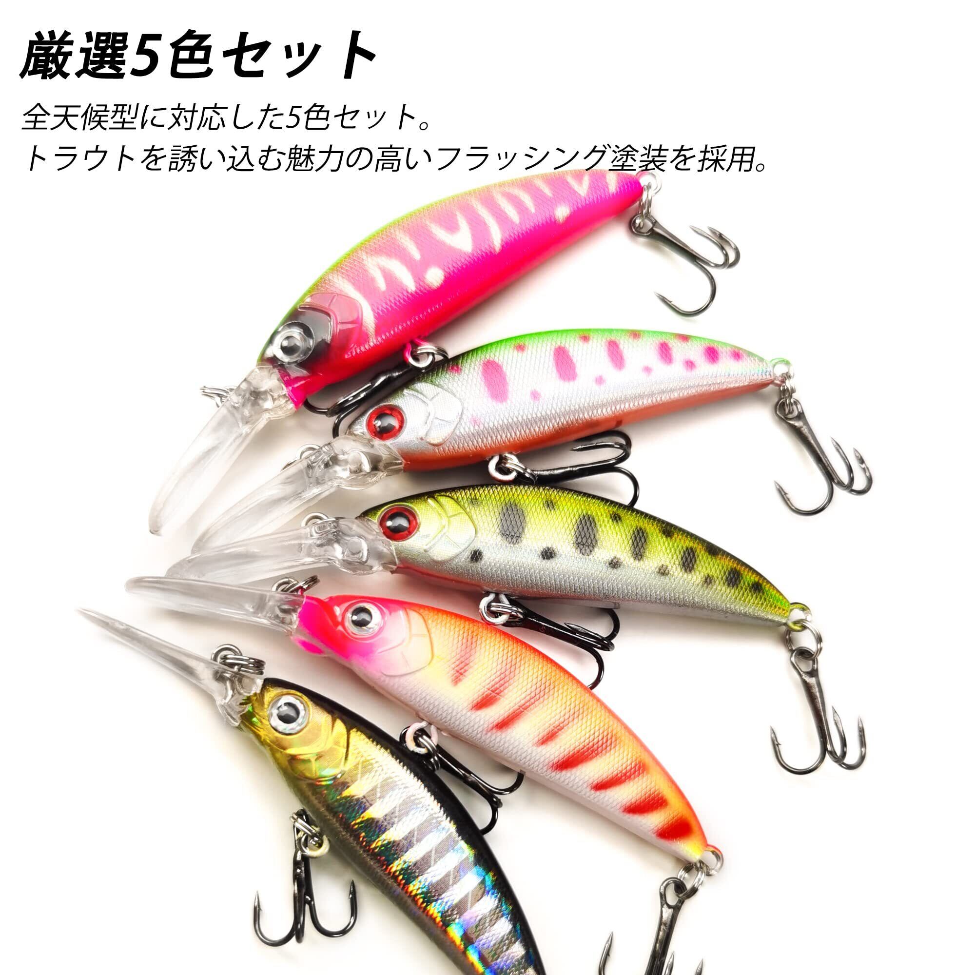 VMSIXVM 渓流ルアーセット 5個5色 トラウト ミノー 管理釣り場 ヘビーシンキング フローティング サスペンド リップ付 フィッシングルアー クランクベイト メバルアジ プラグ 蛙釣り餌