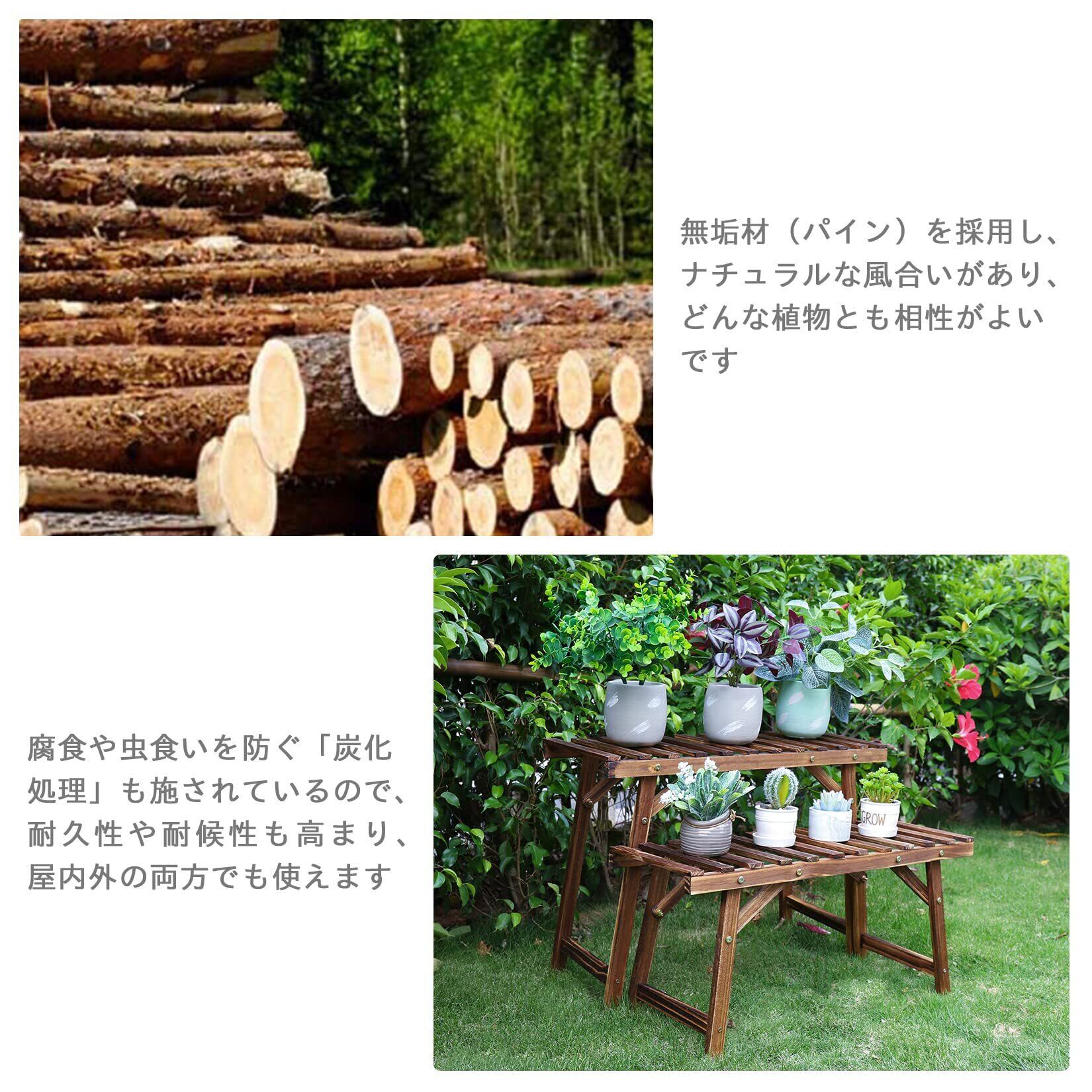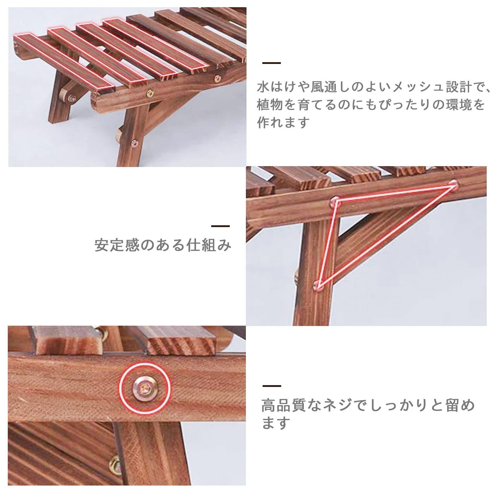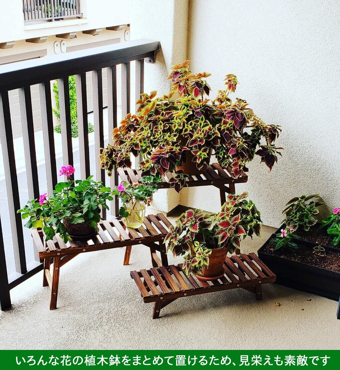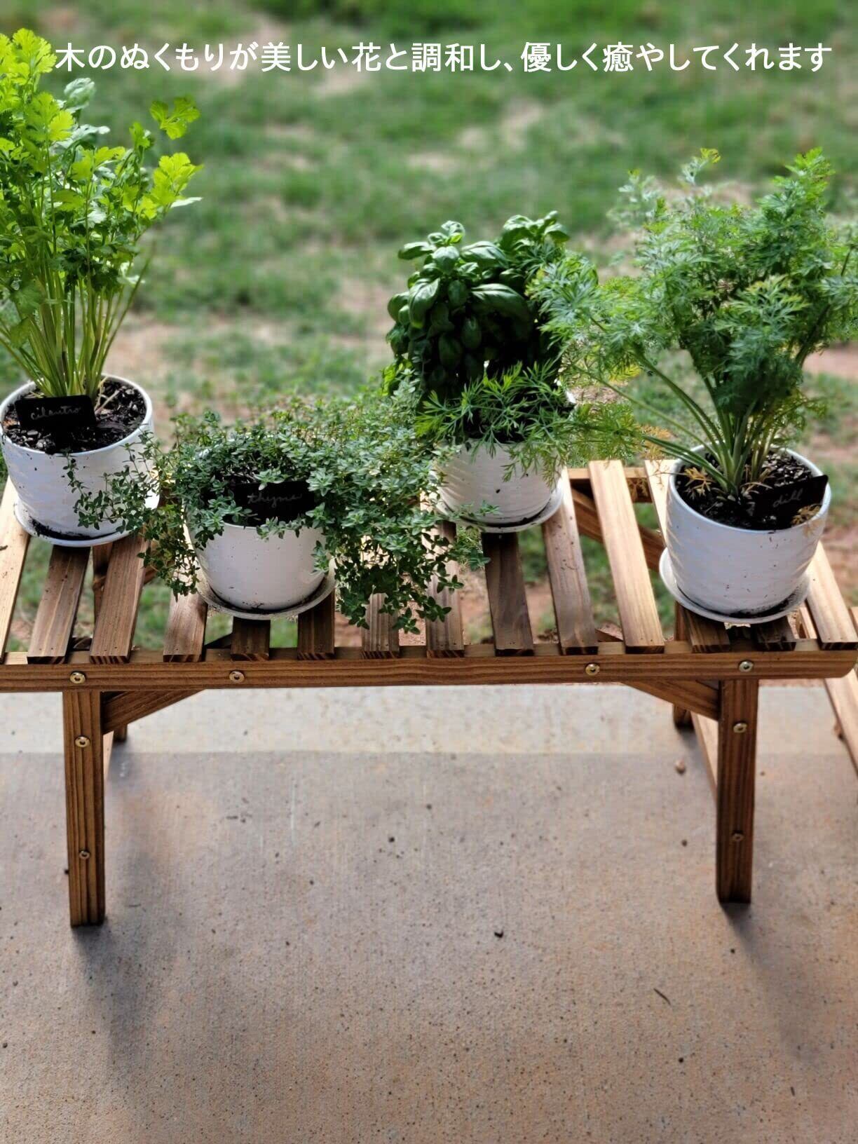 【おしゃれな見た目】どんな植物とも相性のいい木製の飾り棚で、ナチュラルな風合いがあります。お庭やベランダ等に設置し、見栄えが素敵で木のぬくもりが美しい花と調和し、優しく癒やしてくれます