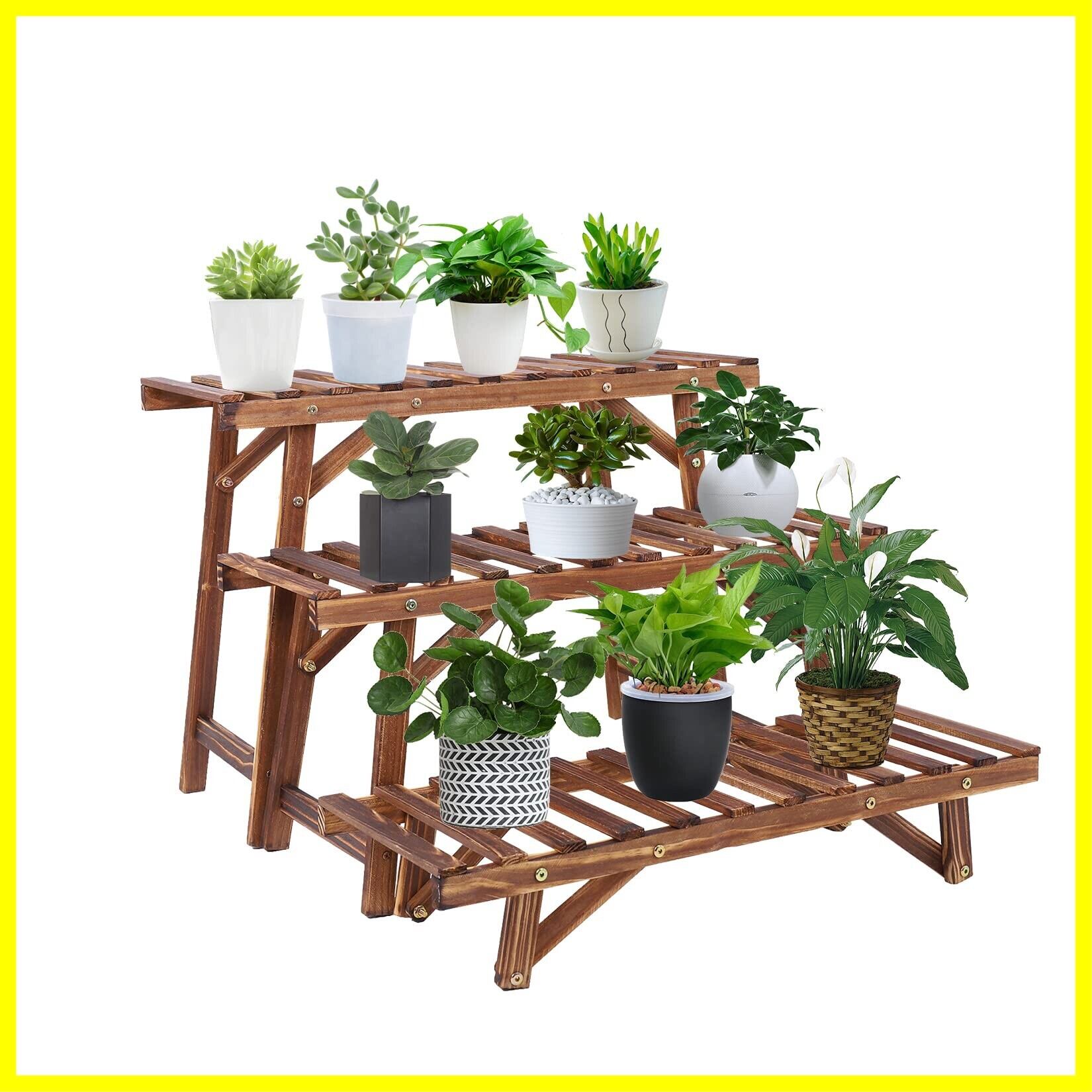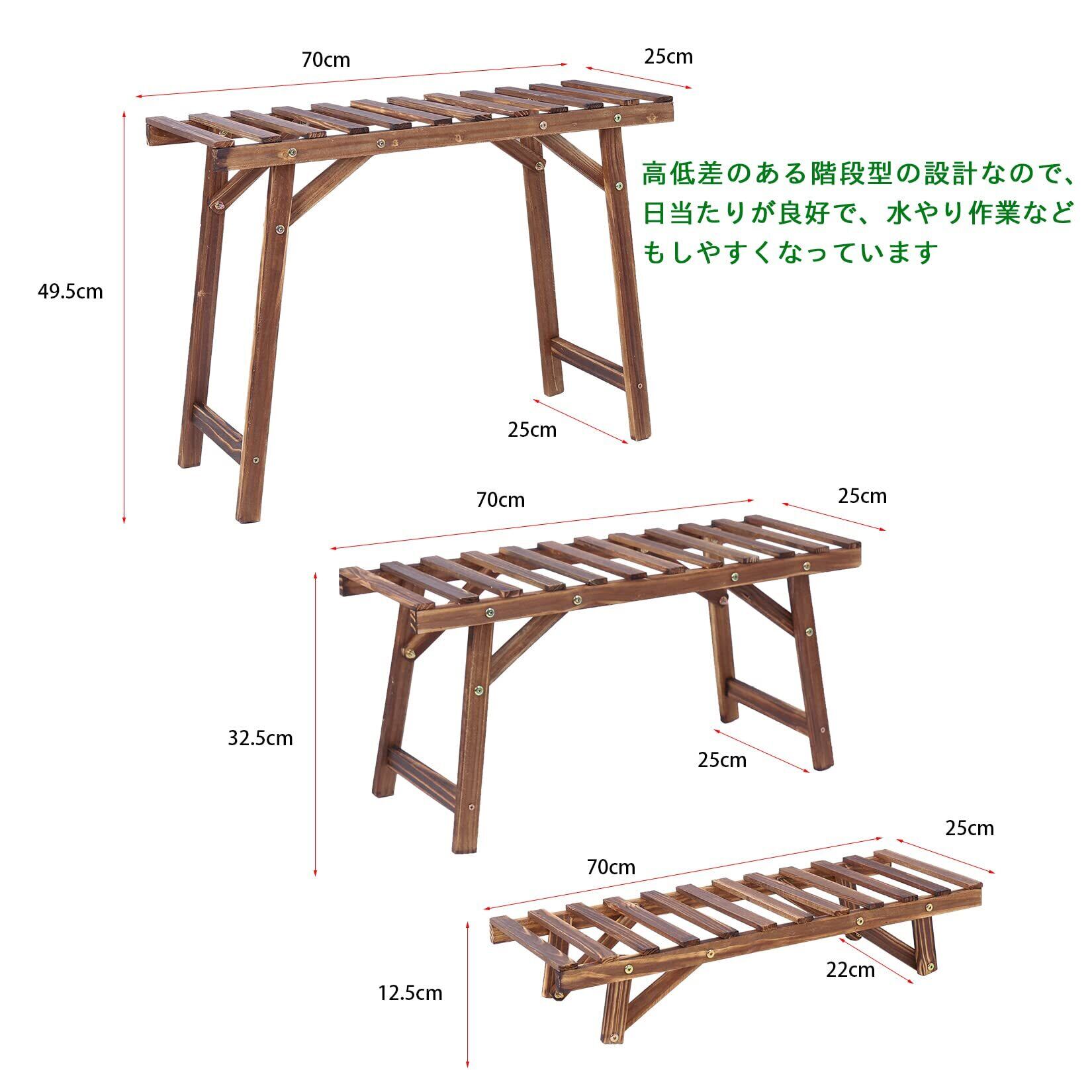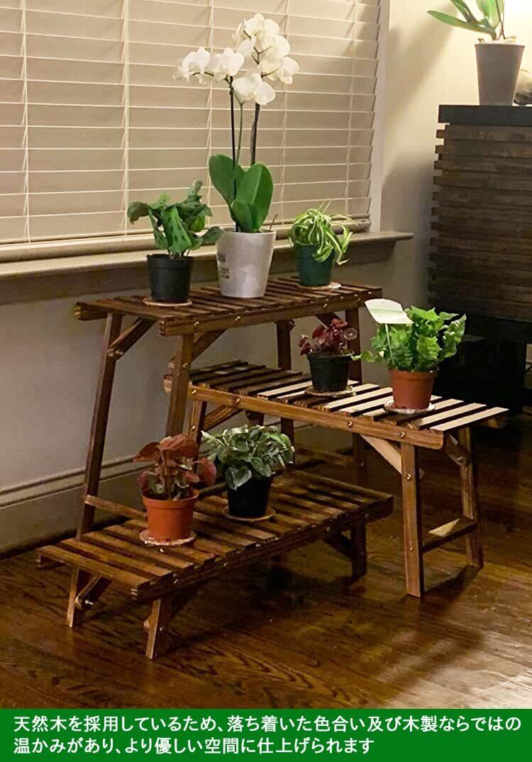 Susire フラワースタンド 屋外 室内 3段 木製 プランタースタンド 大型 階段 花台 スツール 長方形 横長 頑丈 ガーデンラック 玄関 ベランダ アンティーク シンプル ガーデニング 棚 植物台 盆栽 花を飾る台 幅70