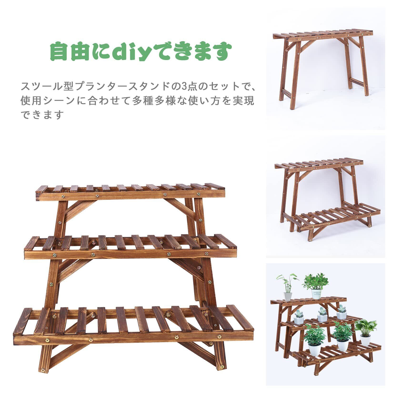 【diyできる階段花台】高さの異なる3点のスツール型のプランタースタンドのセットで、いろんな花の植木鉢をまとめて置けます。多種多様なアレンジ方法が実現できるため、使用シーンに合わせて自由にdiyできます