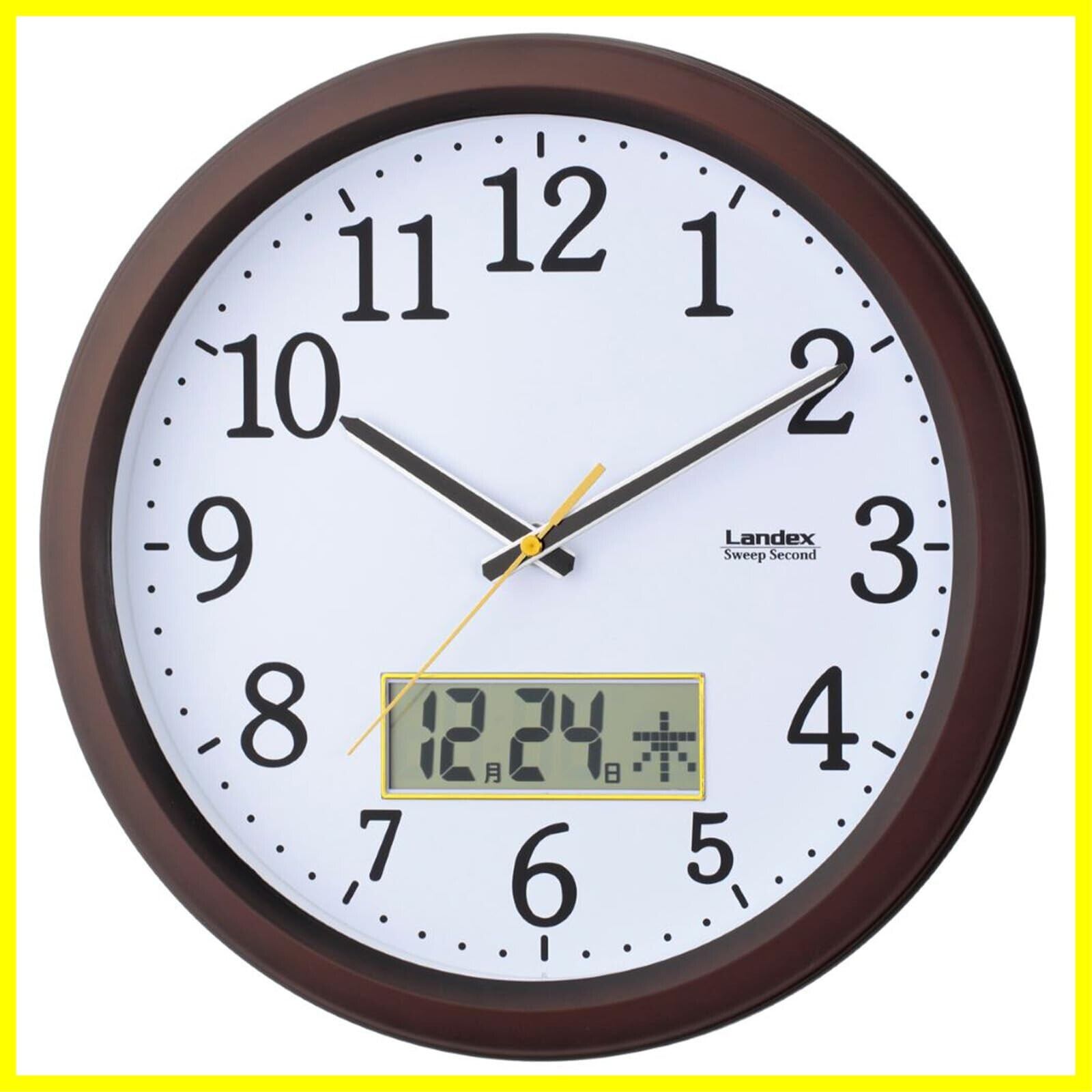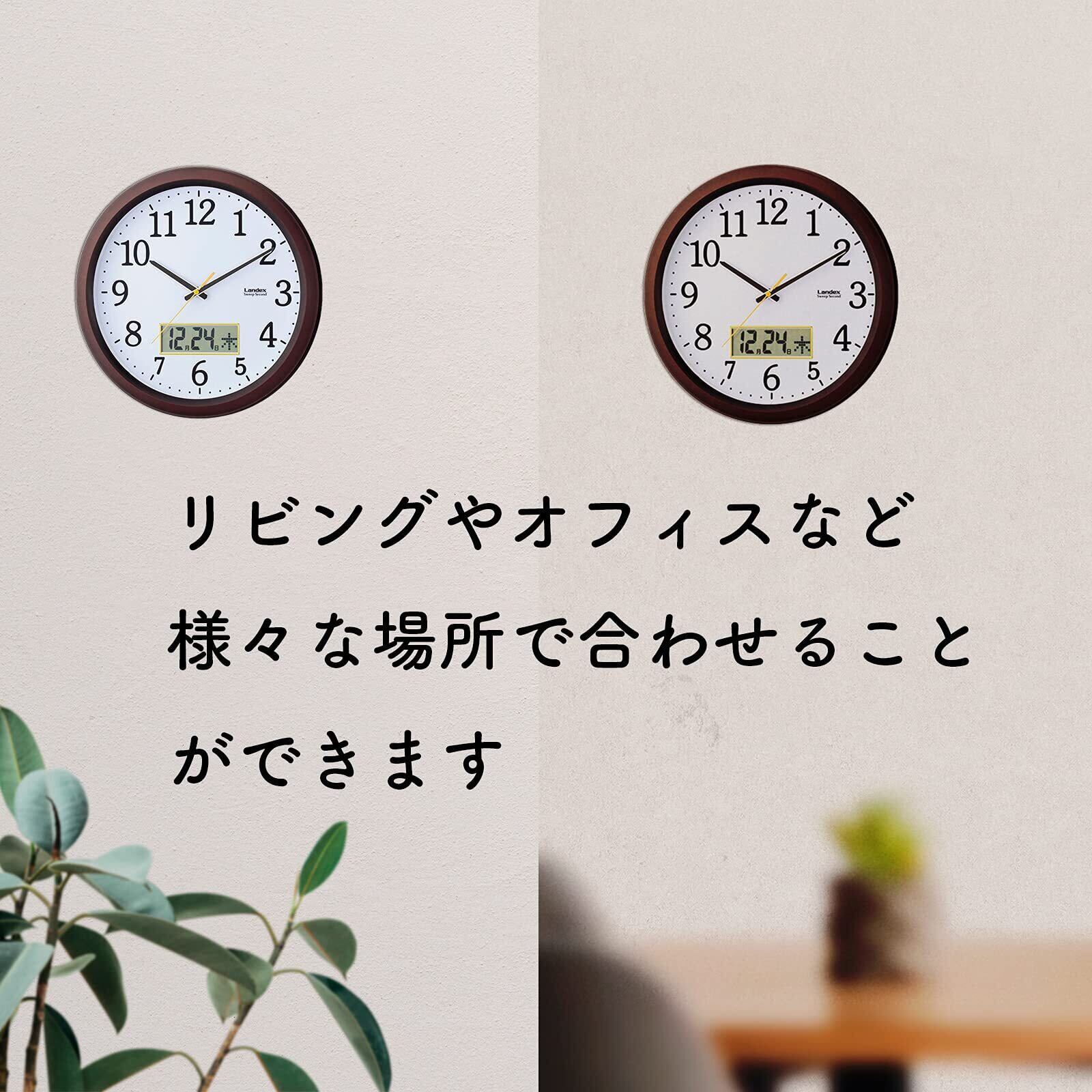 ランデックス(Landex) 掛け時計 ダークブラウン 32.5cm ディアタイム アナログ 日付 曜日表示 静音 連続秒針 YW9142DBR
