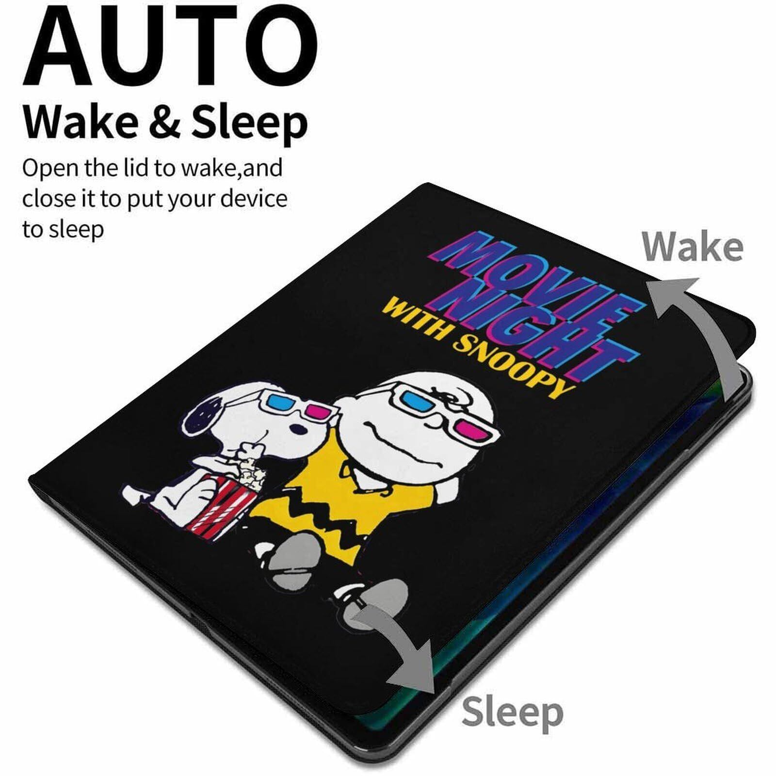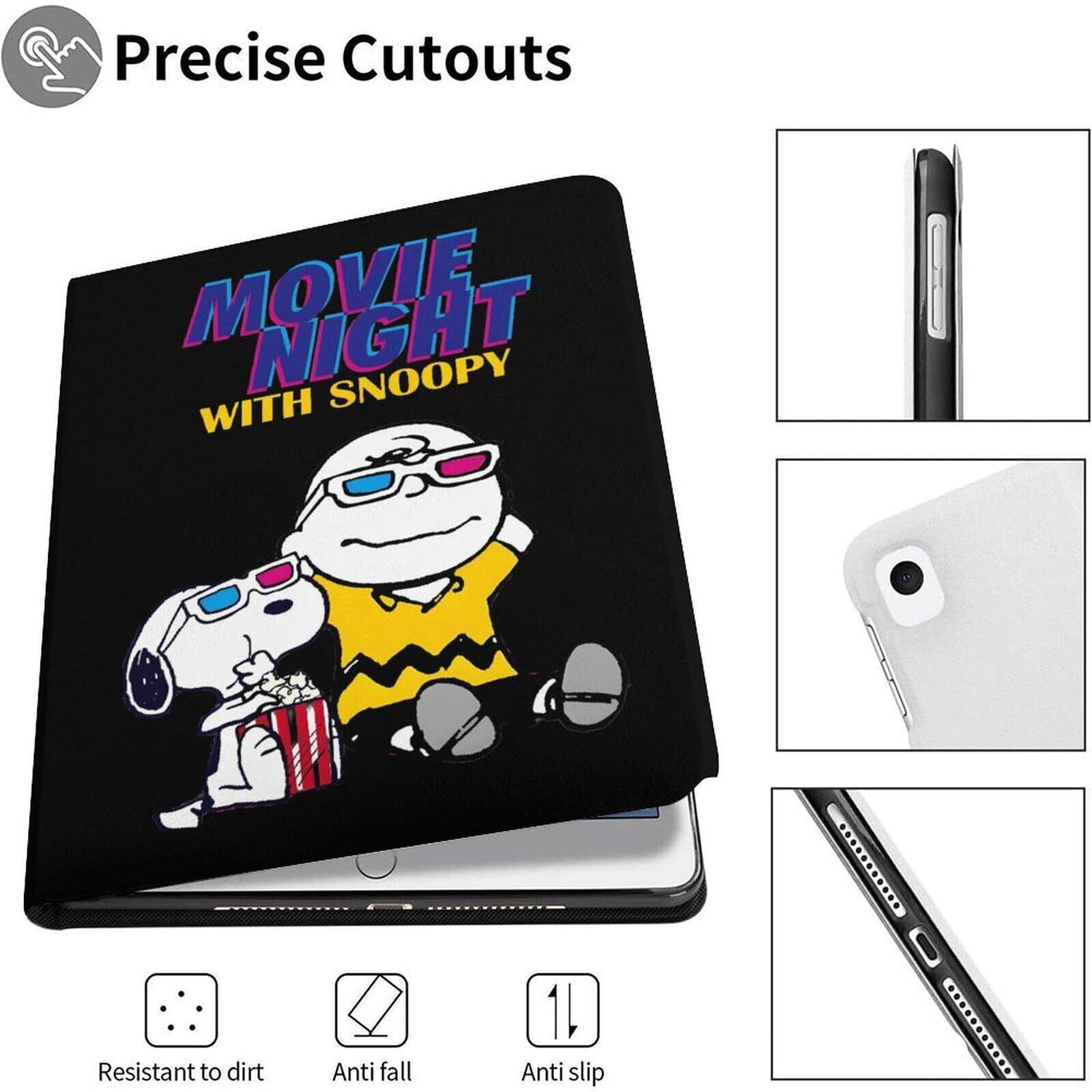【iPad9世代/10世代/11世代/Air4/iPadAir5/Air6/Proに適応】スヌーピー アイパッドケース カバー ペン収納付き ペンシル収納 TPU オートスリープ ブック型 全面保護 スタンド機能 かわいい キャラクター (スヌーピーA, iPad 9世代・10.2inch)