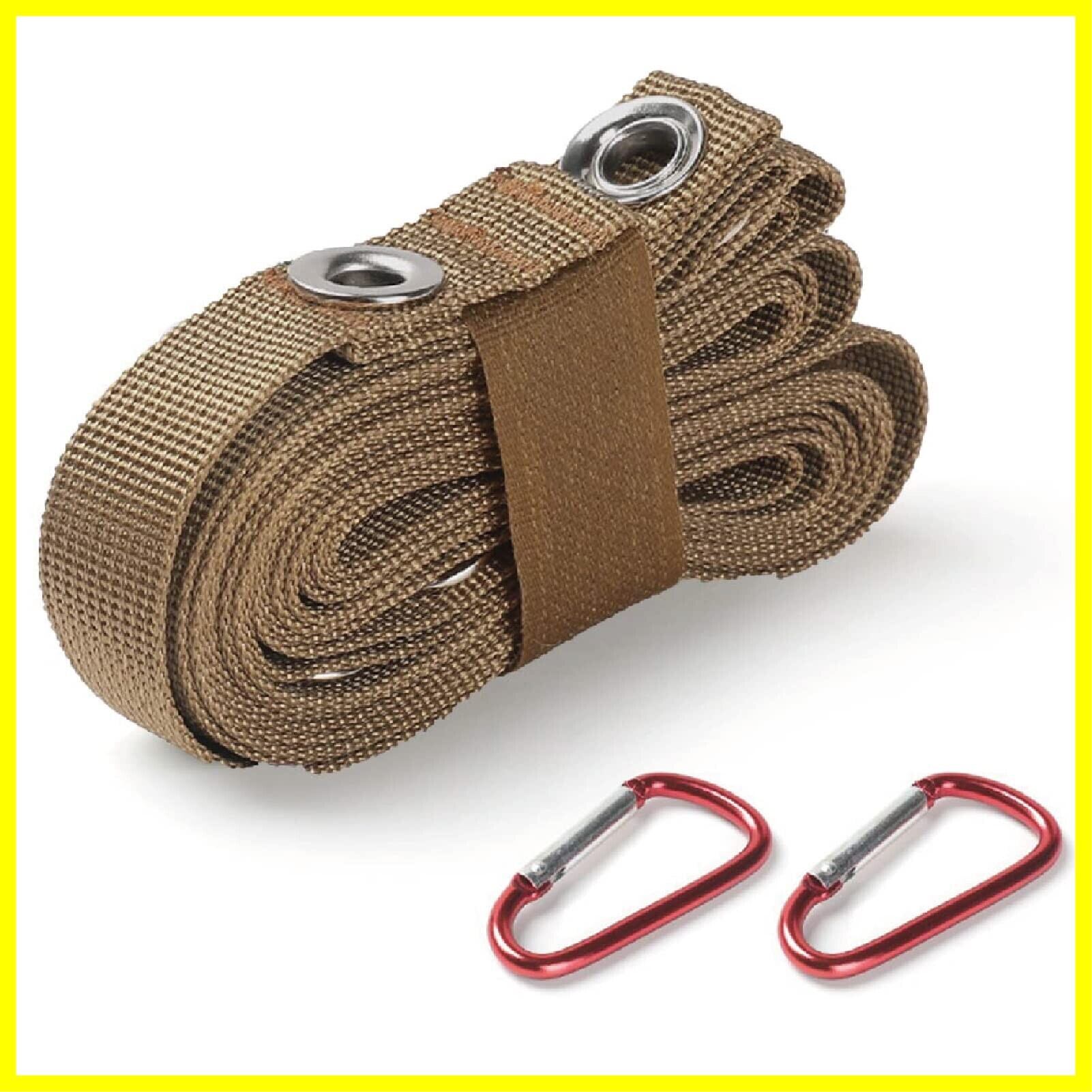 YAPJEB タープ延長ベルト 小川張り ベルト ロープ 3m セッティングテープ タープロープ キャンプ 設営 ガイライン 物干しロープ アウトドア 多機能 カラビナ付 (カーキ)