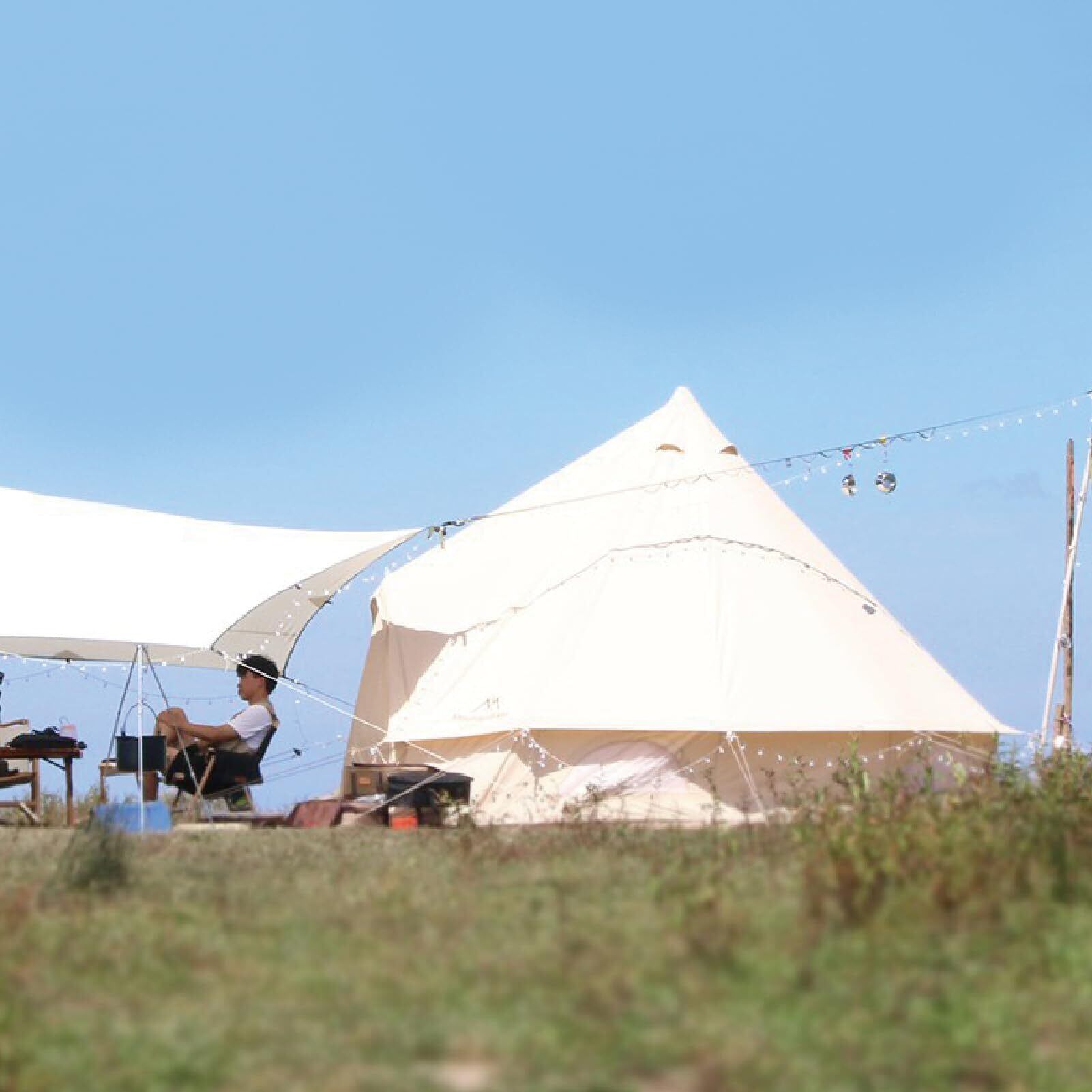 【空間を広げる】- 小川張りロープを利用したタープポールは移動でき、テントの前に邪魔しなくてスペースを100%フル活用できます