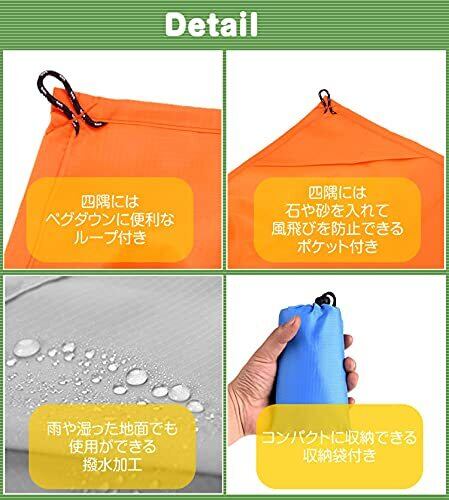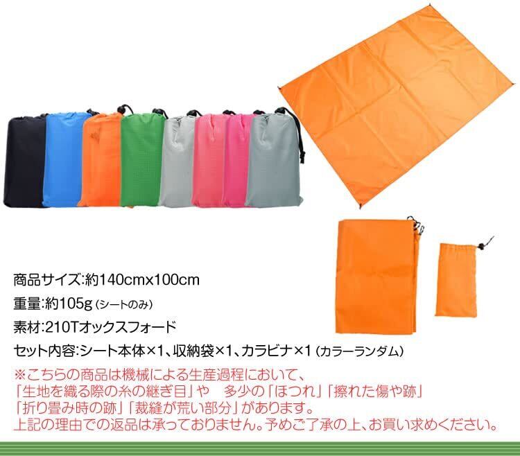 商品サイズ:約140cmx100cm 重量:約105g(シートのみ) 素材:210Tオックスフォード セット内容:シート本体×1、収納袋×1、カラビナ×1(カラーランダム)