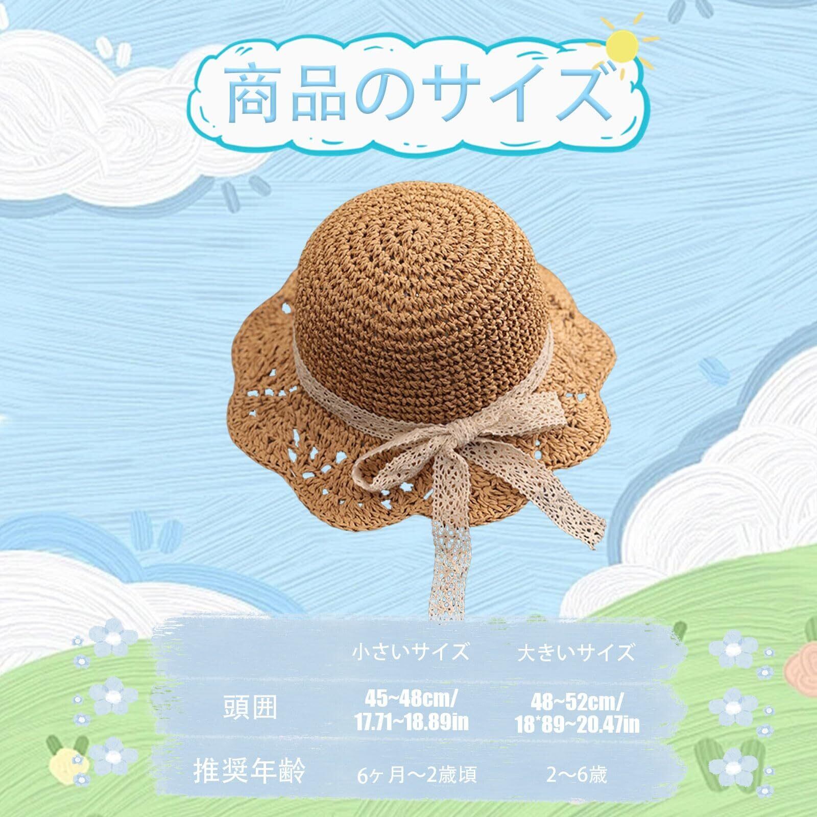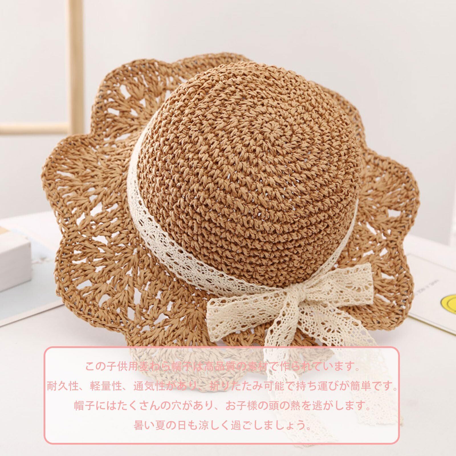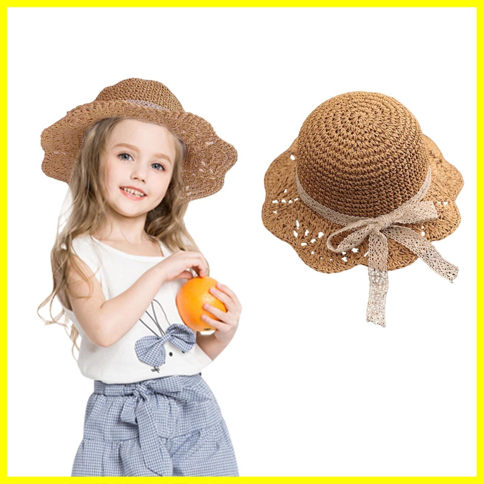[Umeloeo] 子供用 麦わら帽子 キッズ ペーパーハット ベビー 女の子 ストローハット つば広 シンプル 折りたたみ 日除け帽子 サンハット 赤ちゃん 帽子 夏 uvカット 日焼け止め