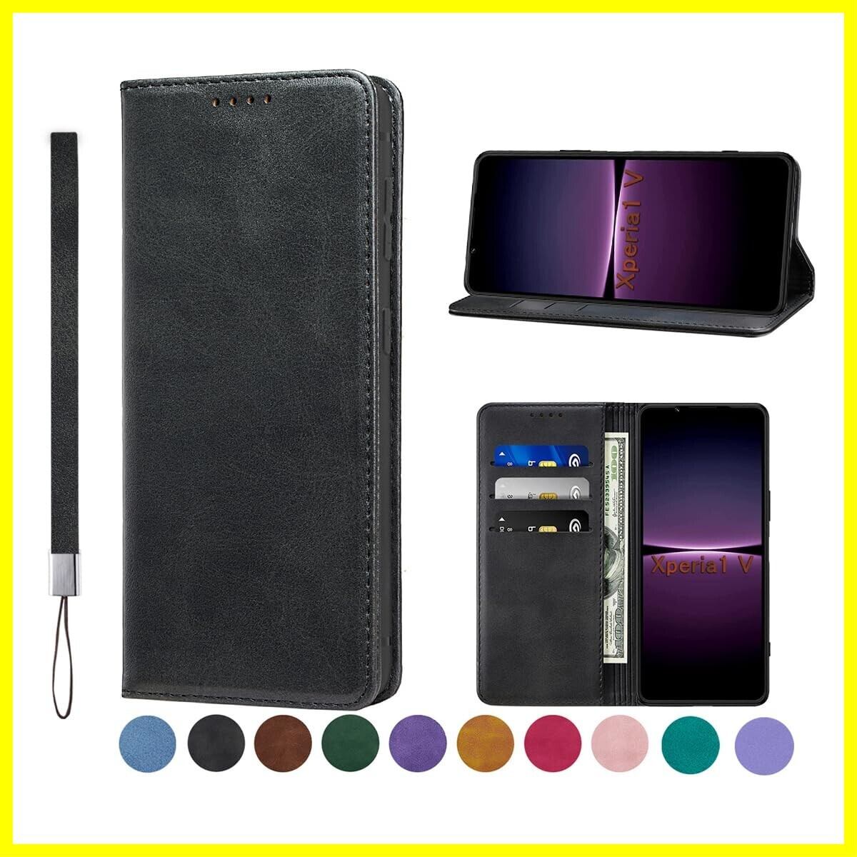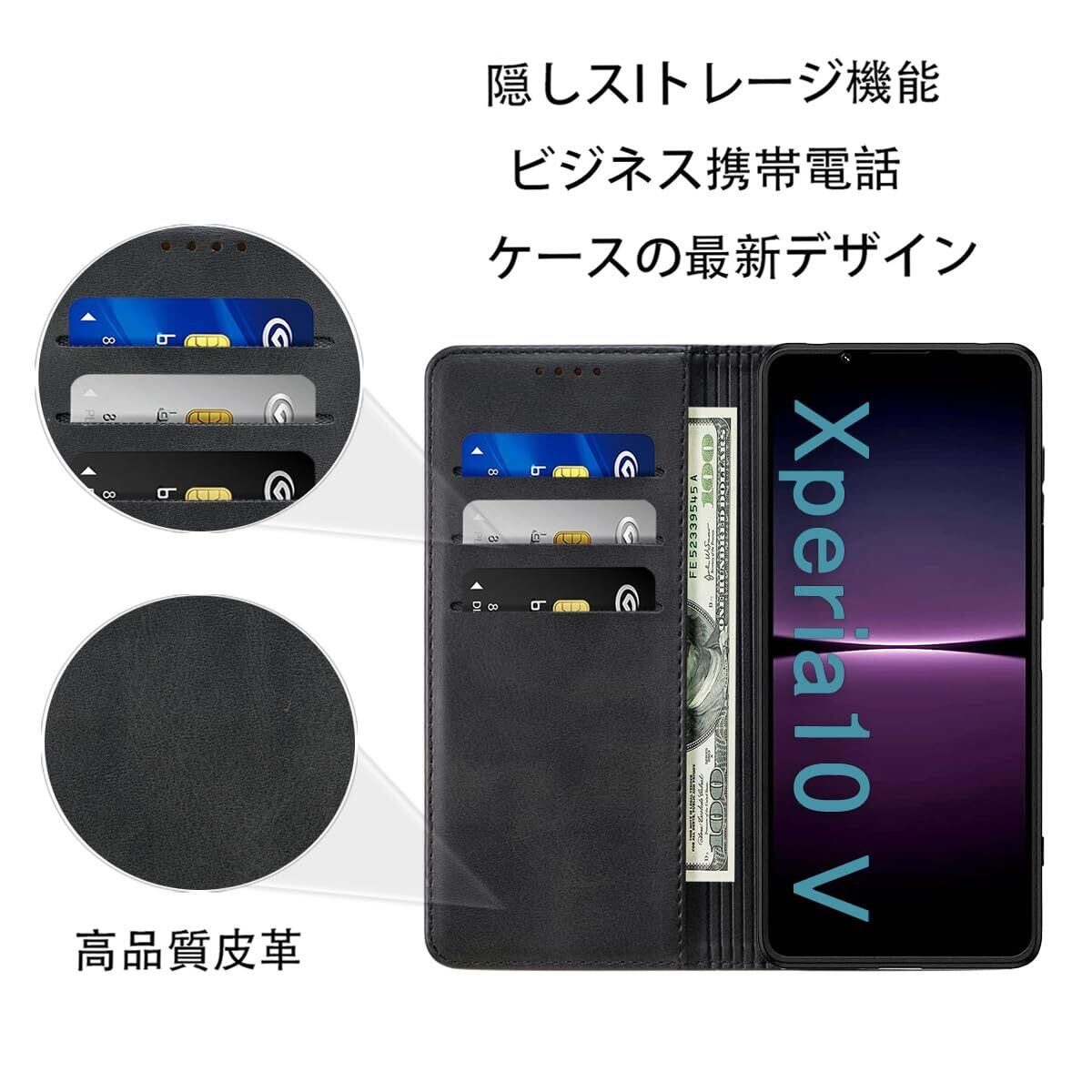 Xperia 10 VI ケース 手帳型 高質PUレザー Xperia 10 VI カバー SO-52E ケース SOG14 耐衝撃 内蔵マグネット開閉式 エクスペリア 10 VI ケース ベルトなし スマホケース おしゃれ カードポケット スタンド機能 便利 スプラット同梱 携帯ケース(ブラック)