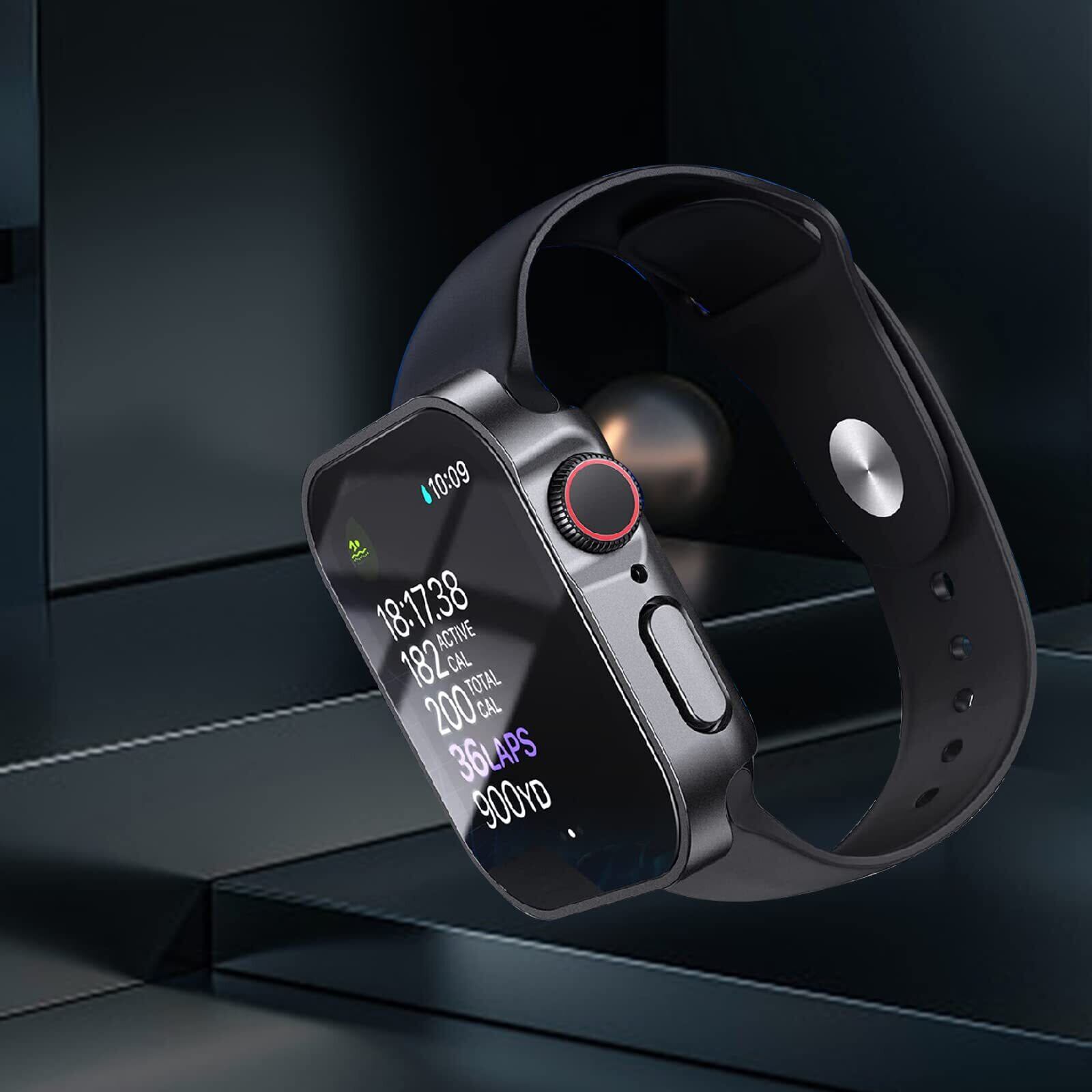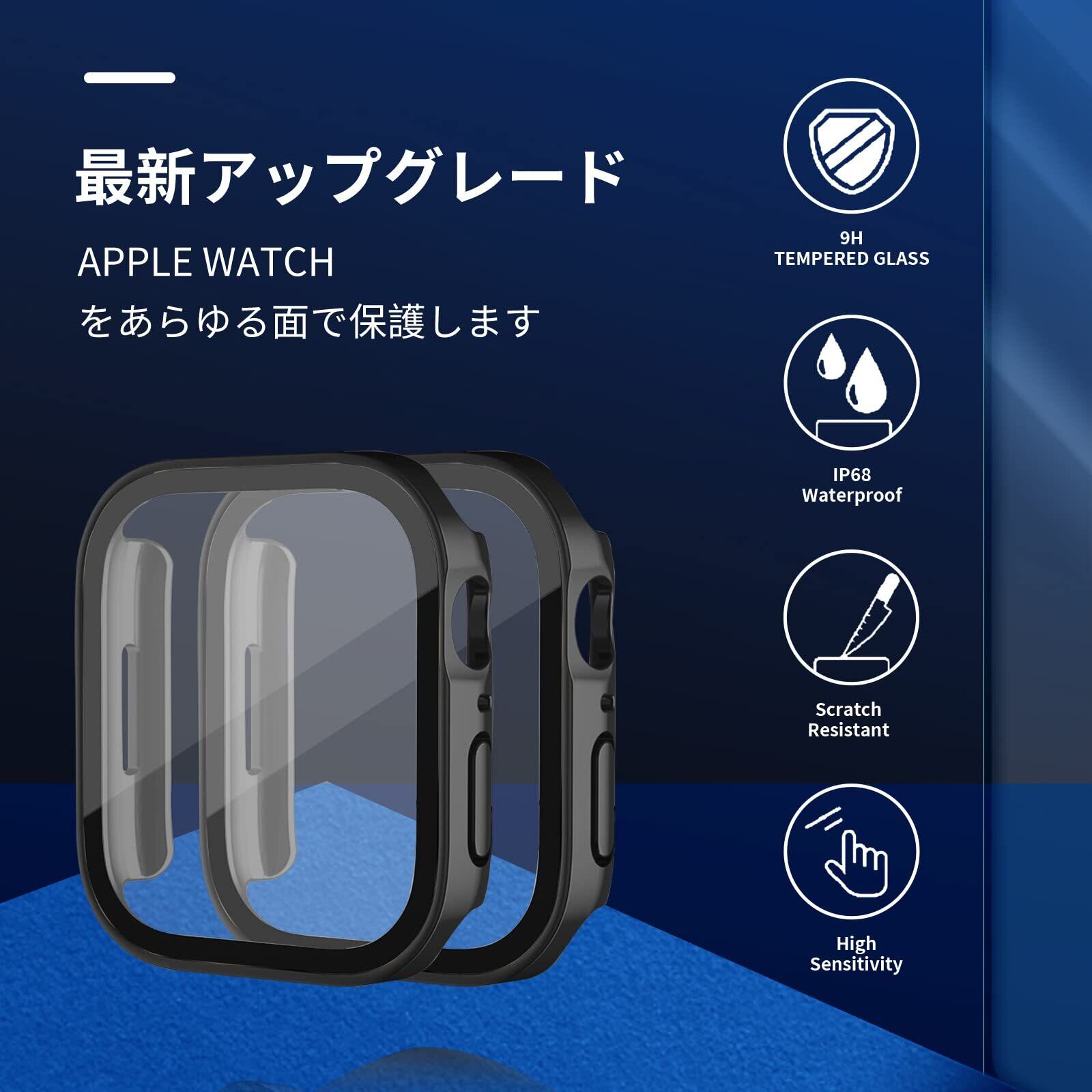JSFOYU 対応 Apple Watch ケース 49mm 45mm 44mm 41mm 40mm アップルウォッチ カバー Series SE2/SE/6/5/4 44mm 全面保護 IP68 防水ケース 3D直角エッジデザイン 対応 アップルウォッチ ケース 日本旭硝子材 PC+ガラス素材 Apple Watch カバー(44mm,ブラック)