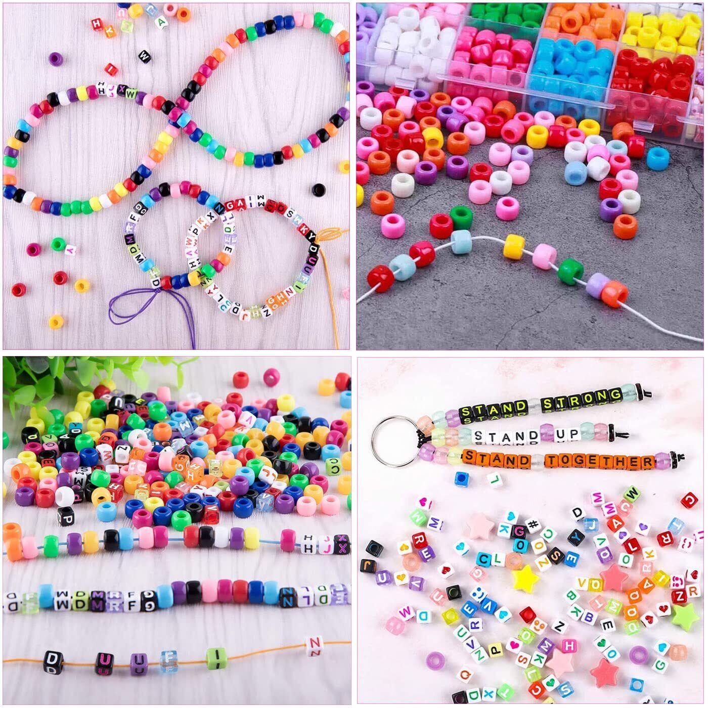 BetterJonny アルファベットビーズ 約900個 アクリル ビーズ キューブビーズ ポニービーズ レタービーズキット カラフルなブレスレットストリングネックレスイヤリングジュエリー作り…