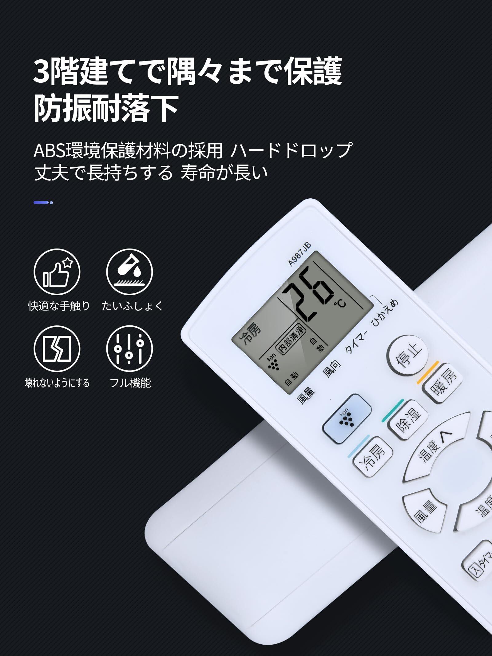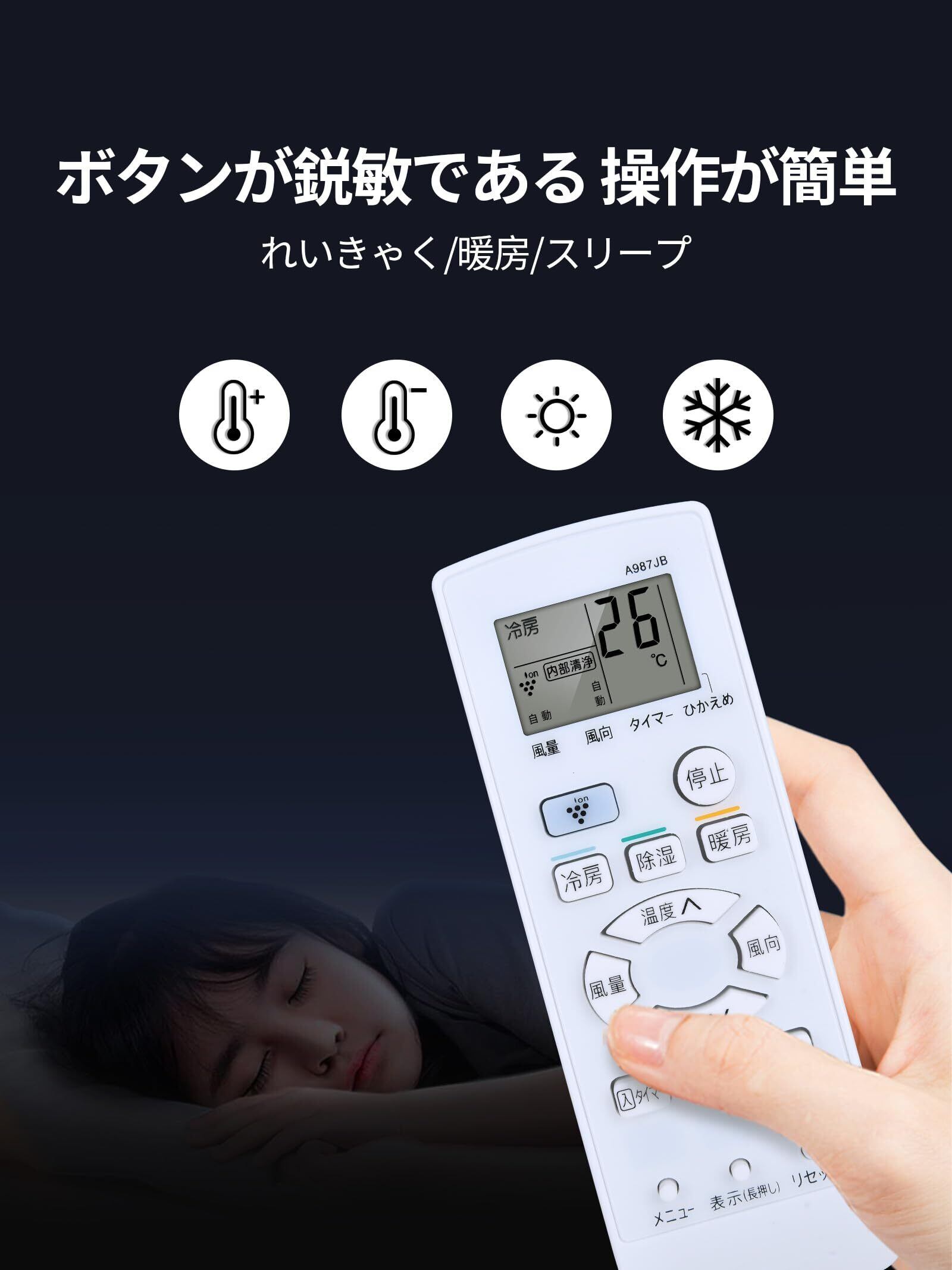 このエアコンリモコンは「汎用リモコン」ではなく、シャープ製エアコンリモコンA987JB リモコンシリーズの代替品としてのみご使用いただけます、上記のエアコンモデルのみと互換性があります(ご購入前に必ずご確認ください)