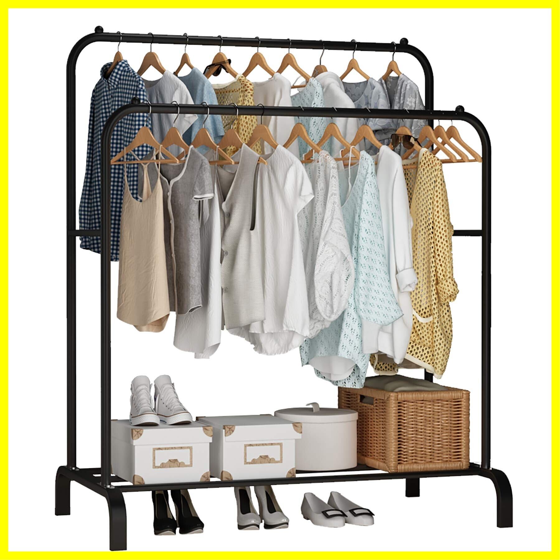 UDEAR ガーメント ラック 自立型 ハンガー ダブル ロッド 多機能 ベッドルーム 衣類 ラック 110*54*150 cm ブラック