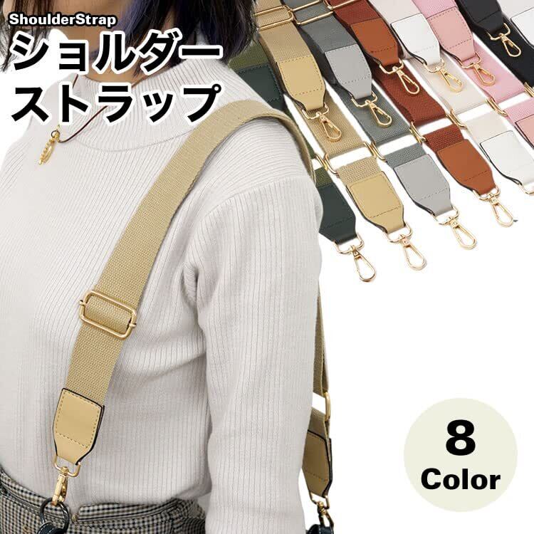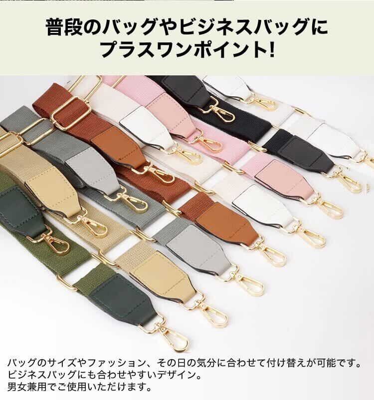 prendre ショルダーベルト ショルダーストラップ バッグ用 コットン PUレザー ナスカン 幅広 太め ショルダー紐 ショルダー ベルト 斜めがけ バッグストラップ ショルダーバッグ ストラップ 付け替え (ホワイト) PR-SHOULST20-WH