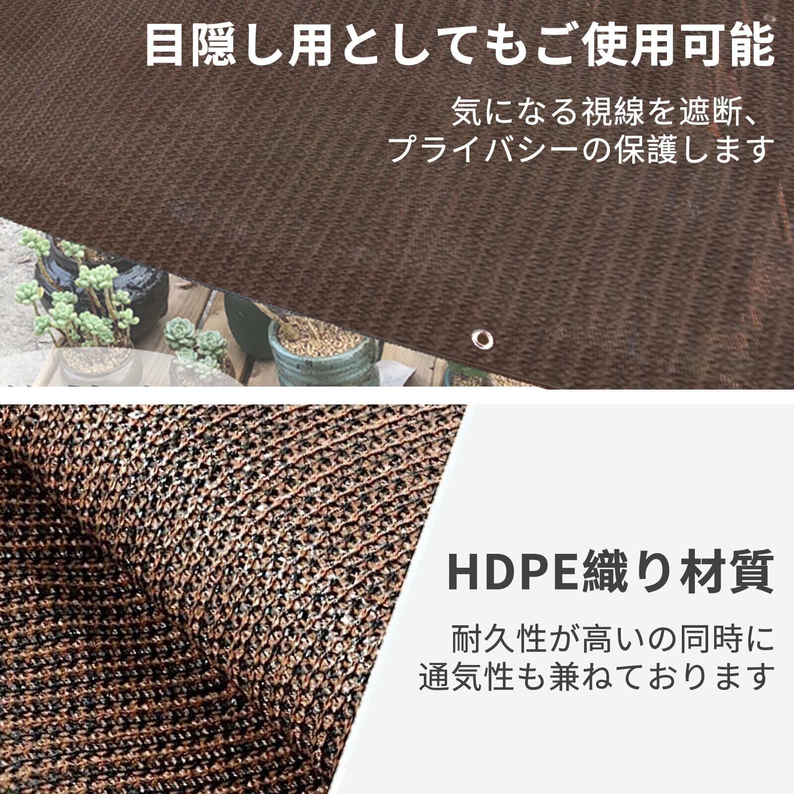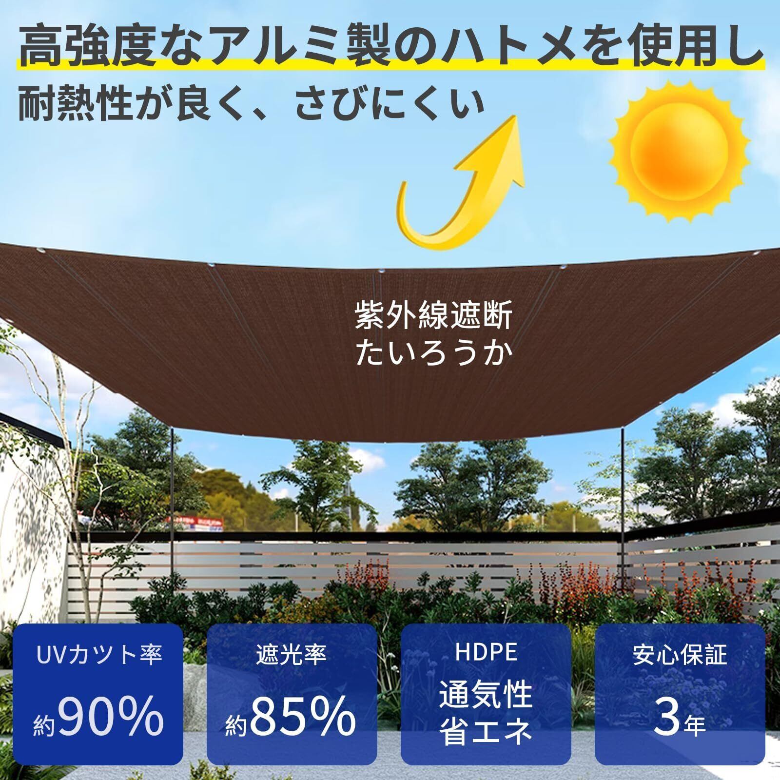 【高品質通気性材料】高密度HDPE素材製のサンシェードは、強い日差しをカットして必要な日よけ効果を発揮。ない日除けシェードと違い、長年でも変形や色褪せしにくいので、安心してご使用いただけます。