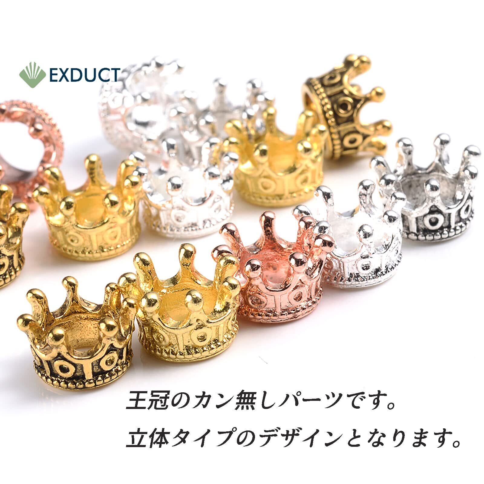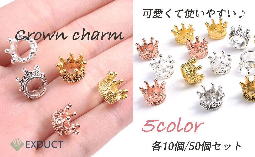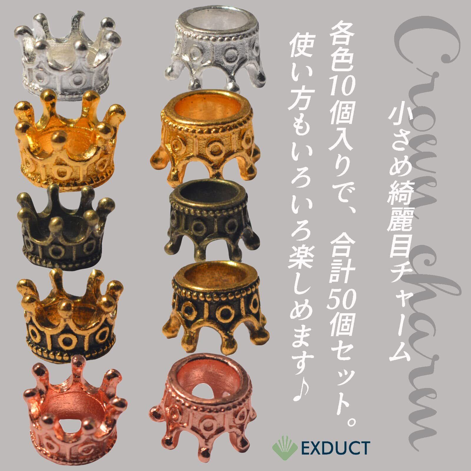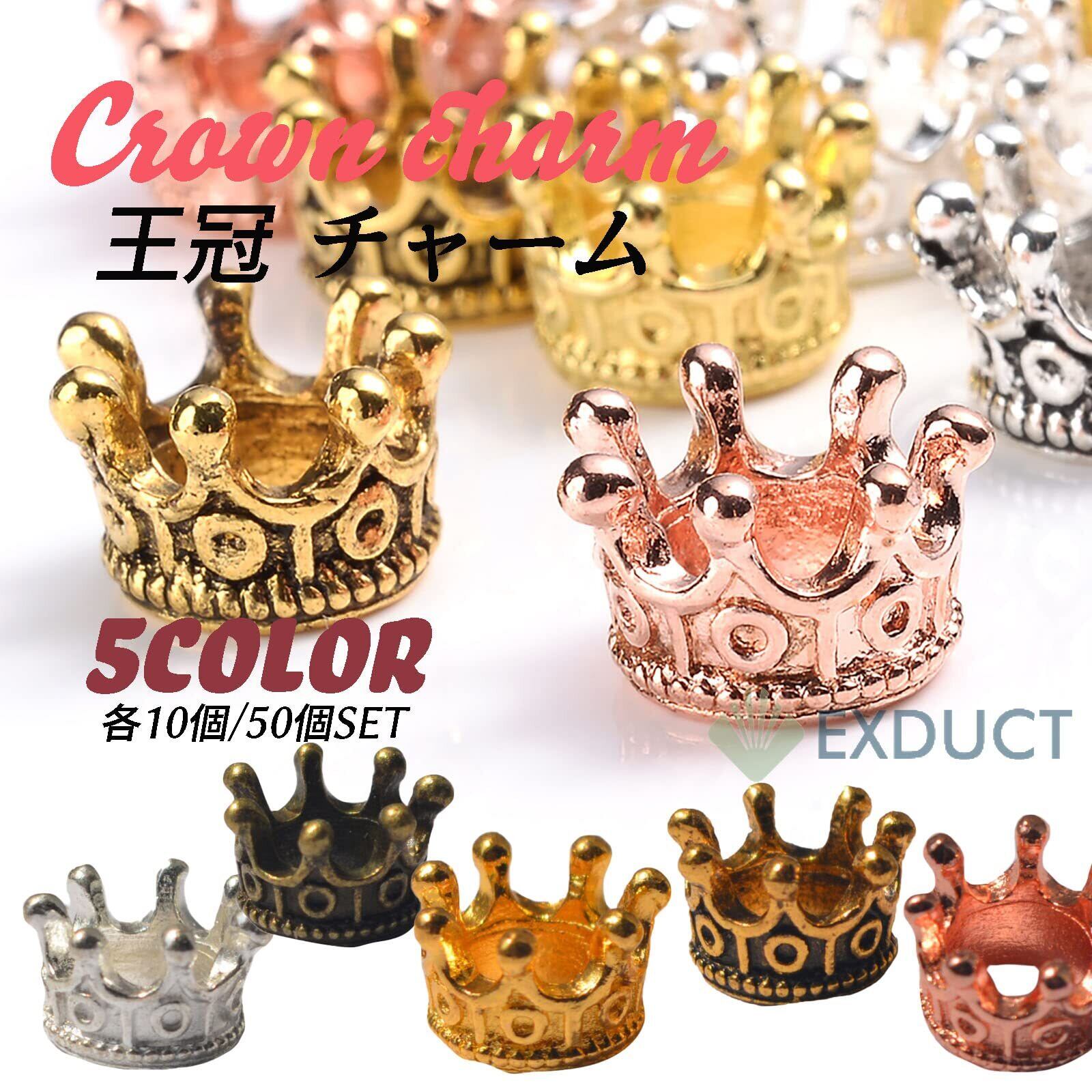 EXDUCT 王冠 チャーム 11mm レジン枠 メタル 5色 各10個 ハンドメイド パーツ (5色50個セット) (5色50個)