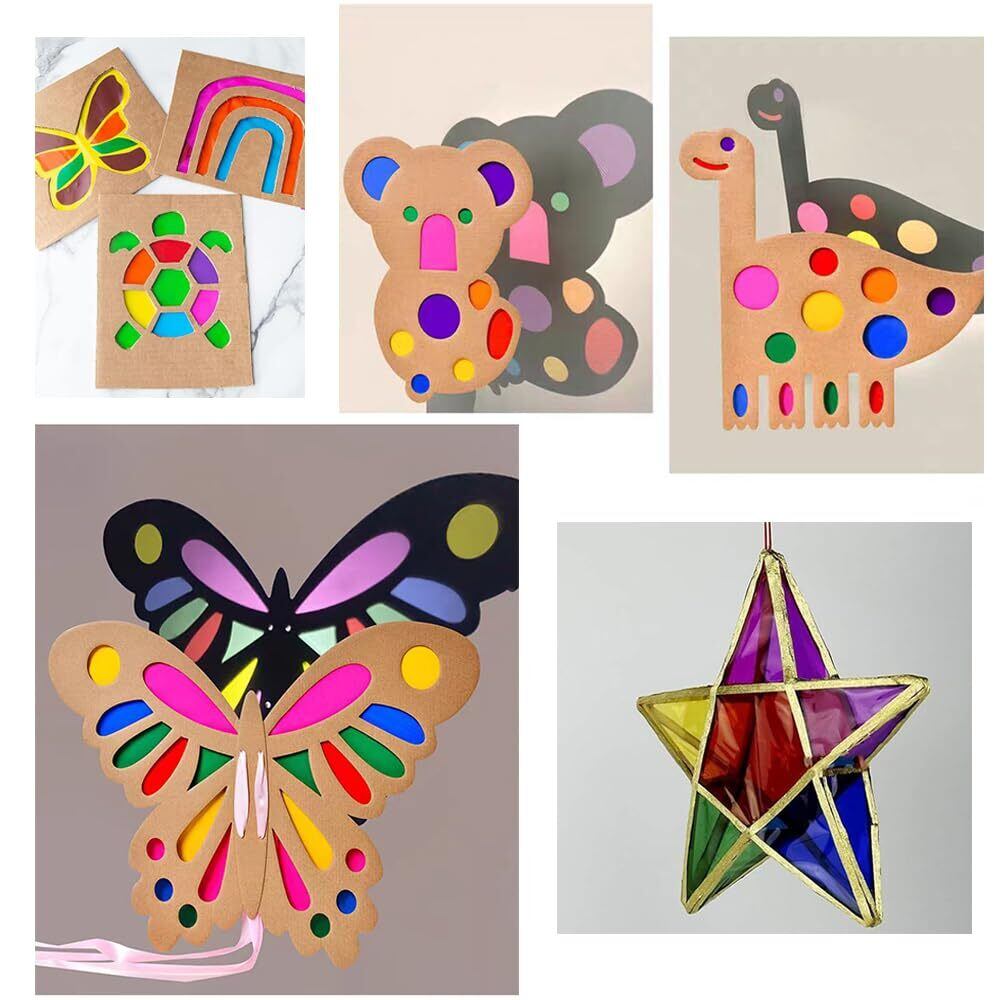 【アイデア】セロハンのアイデアは無限にあります。色を重ねたり組み合わせたりすることで、さまざまな効果を試すことができます。