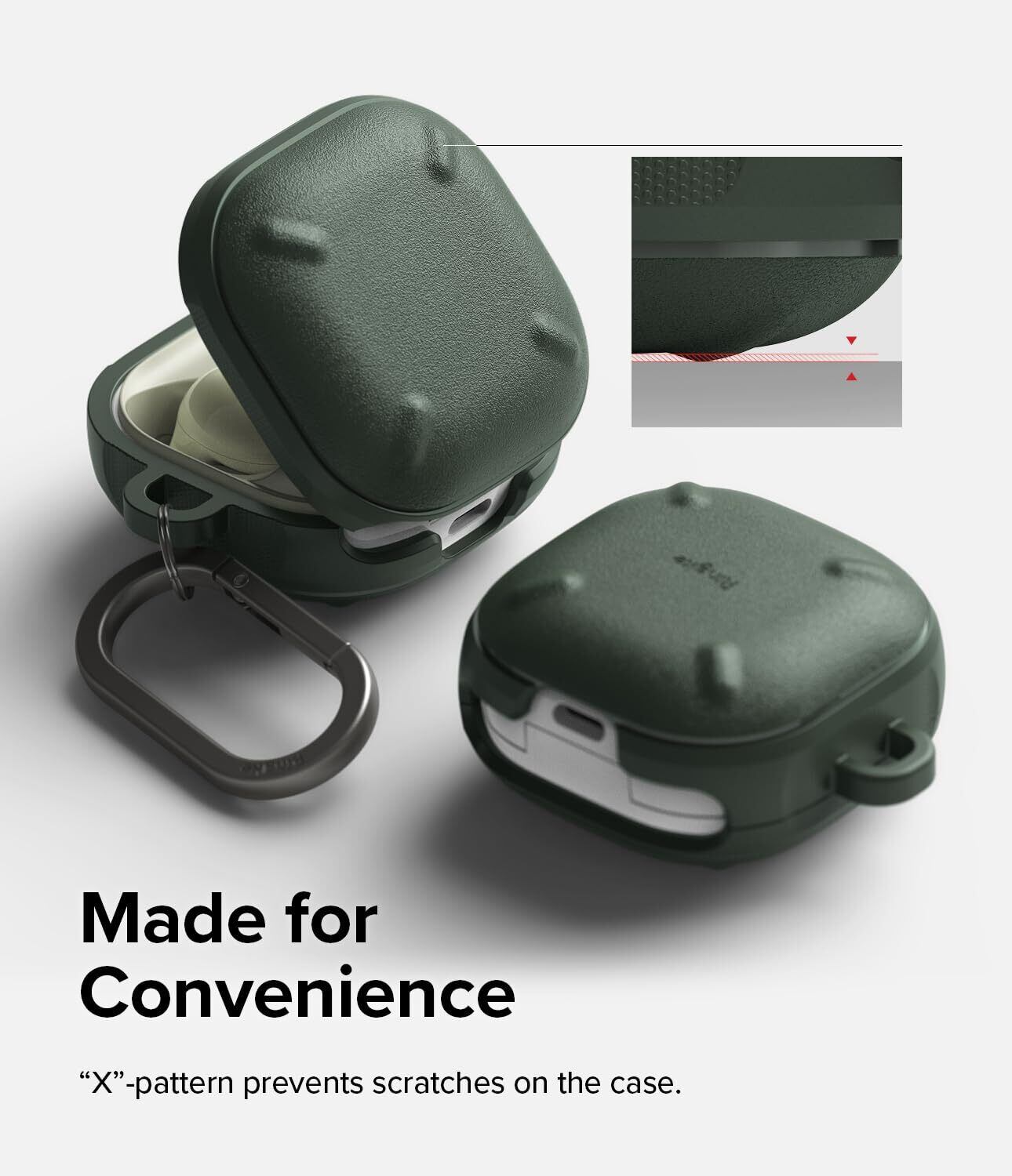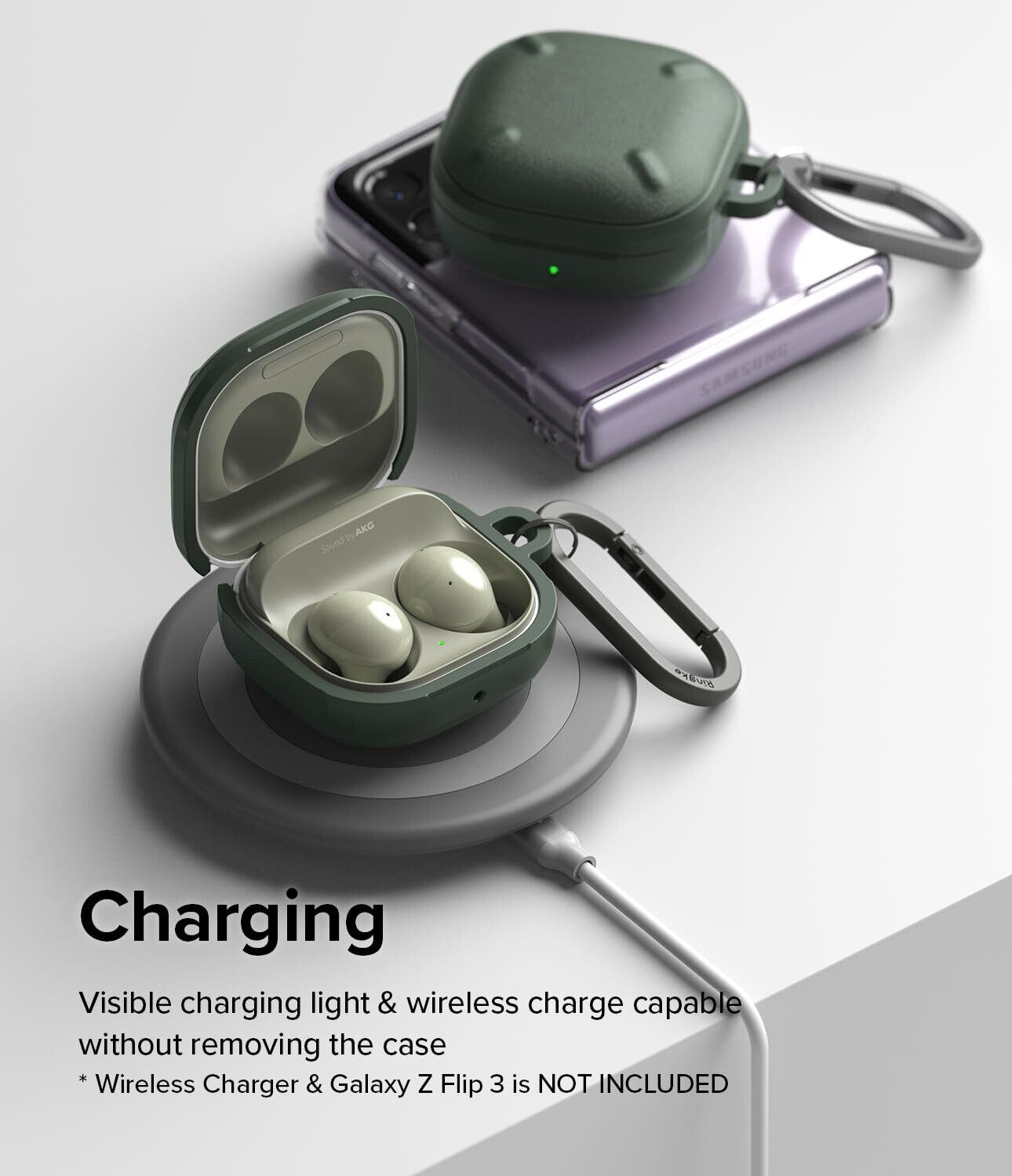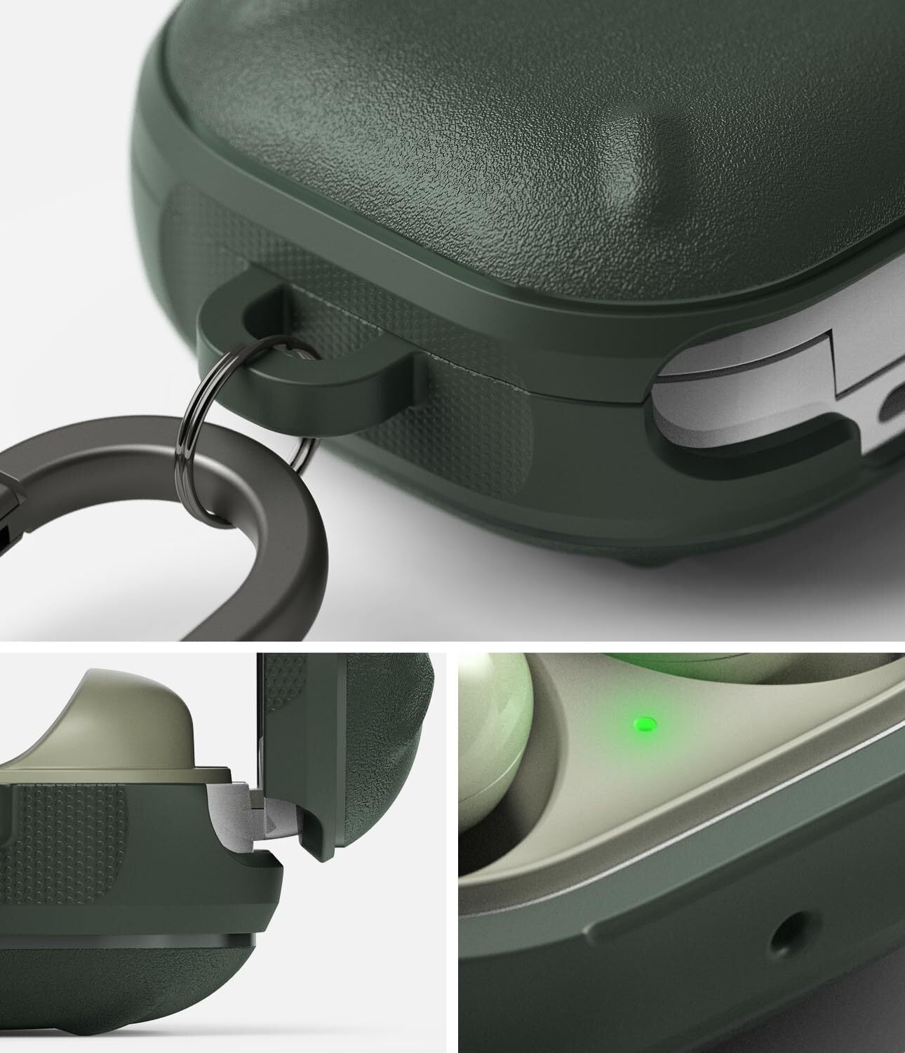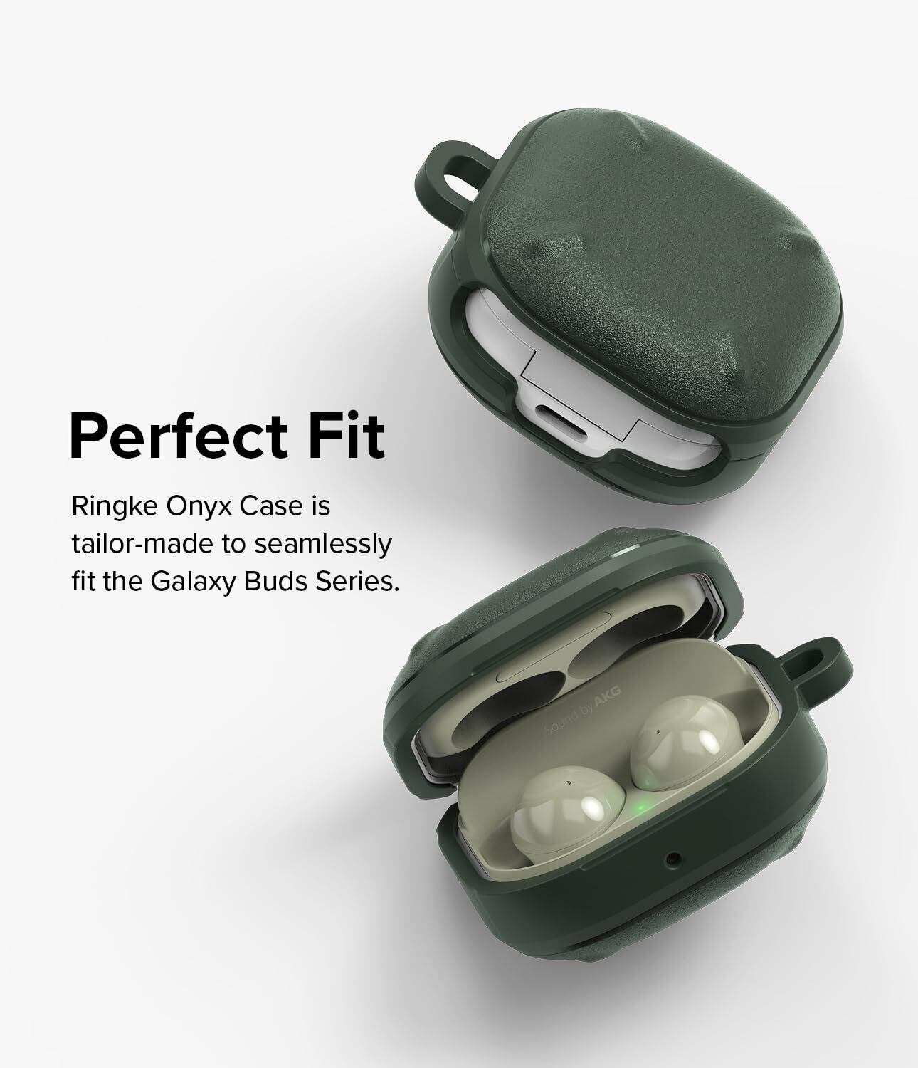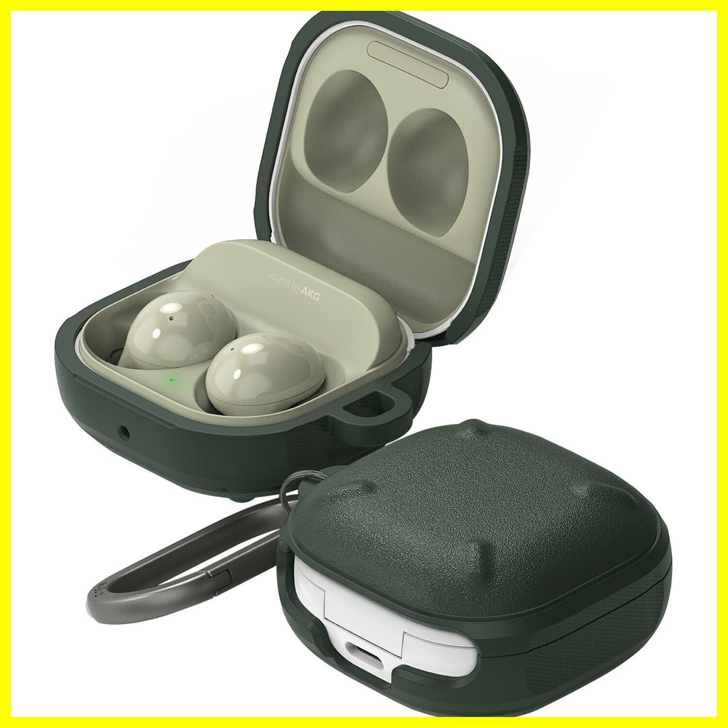 【Ringke】Galaxy Buds FE/Buds 2 Pro/Buds 2/Buds Live/Buds Pro ケース ONYX TPU ギャラクシー バッズ2 耐衝撃 保護 ワイヤレス充電 (カラビナ付き) - Dark Green