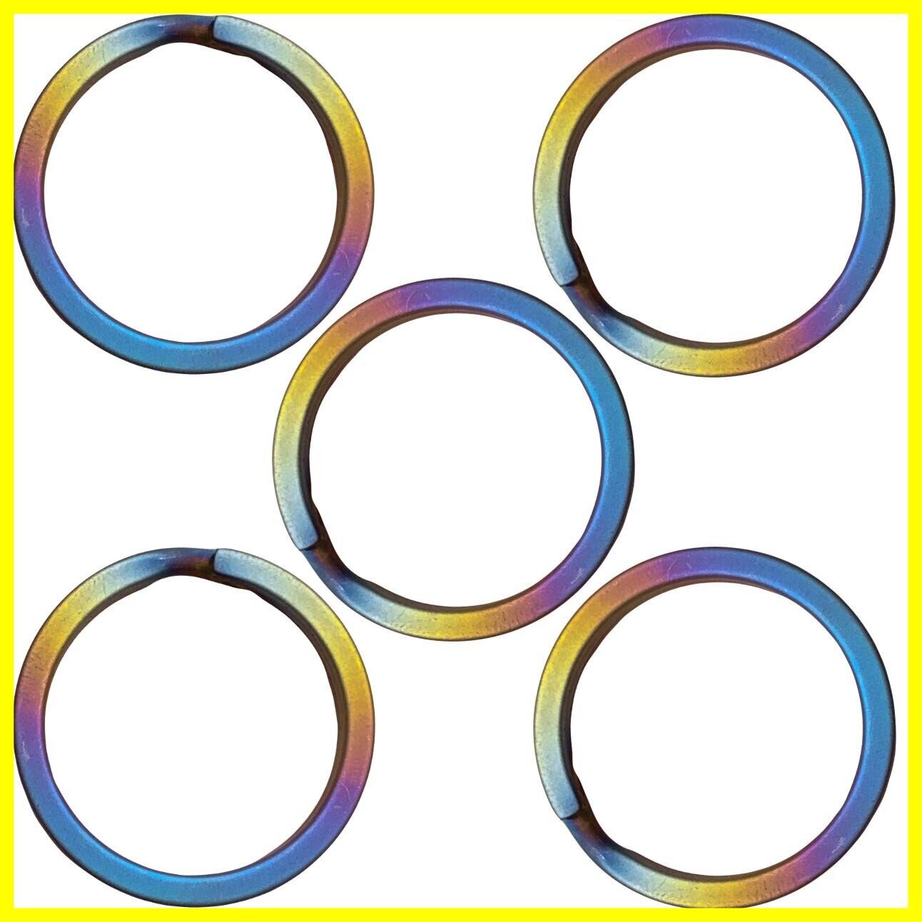 純チタンを使用した、直径が32mmで内径が26mmの虹色の純チタン製キーリングが5点のセットです。