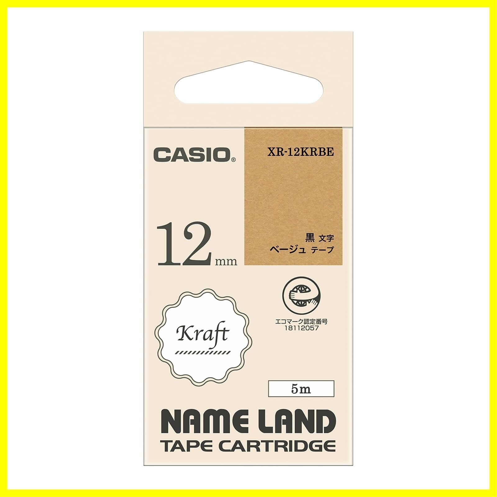 カシオ ラベルライター ネームランド クラフトテープ 12mm XR-12KRBE ベージュに黒文字