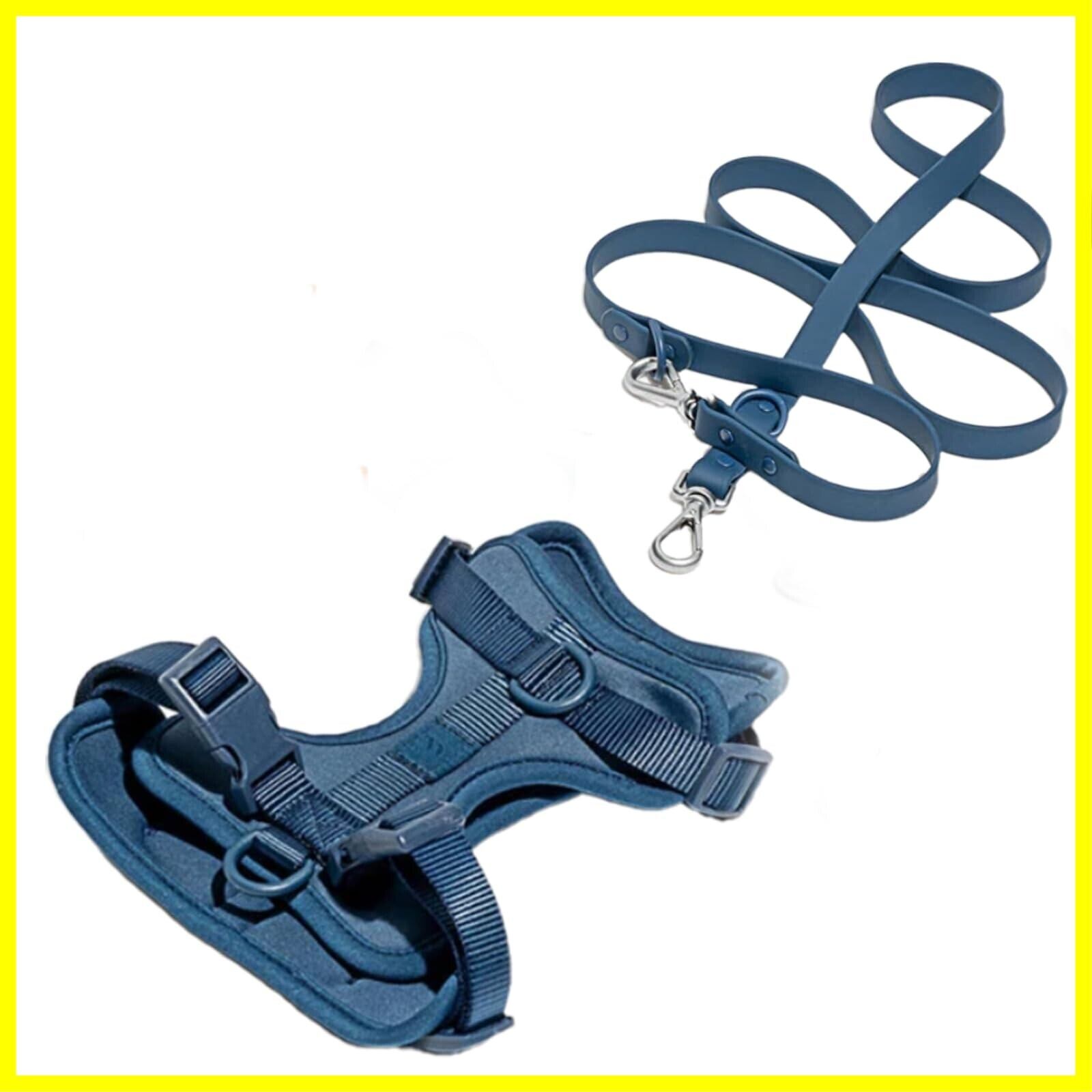 <NY発・遂に日本上陸>犬のお散歩セット(ハーネス+リード)トレンドカラー 調整可能 首に優しい PVC 高い耐久性 汚れにくい 洗いやすい (ネイビー, M)