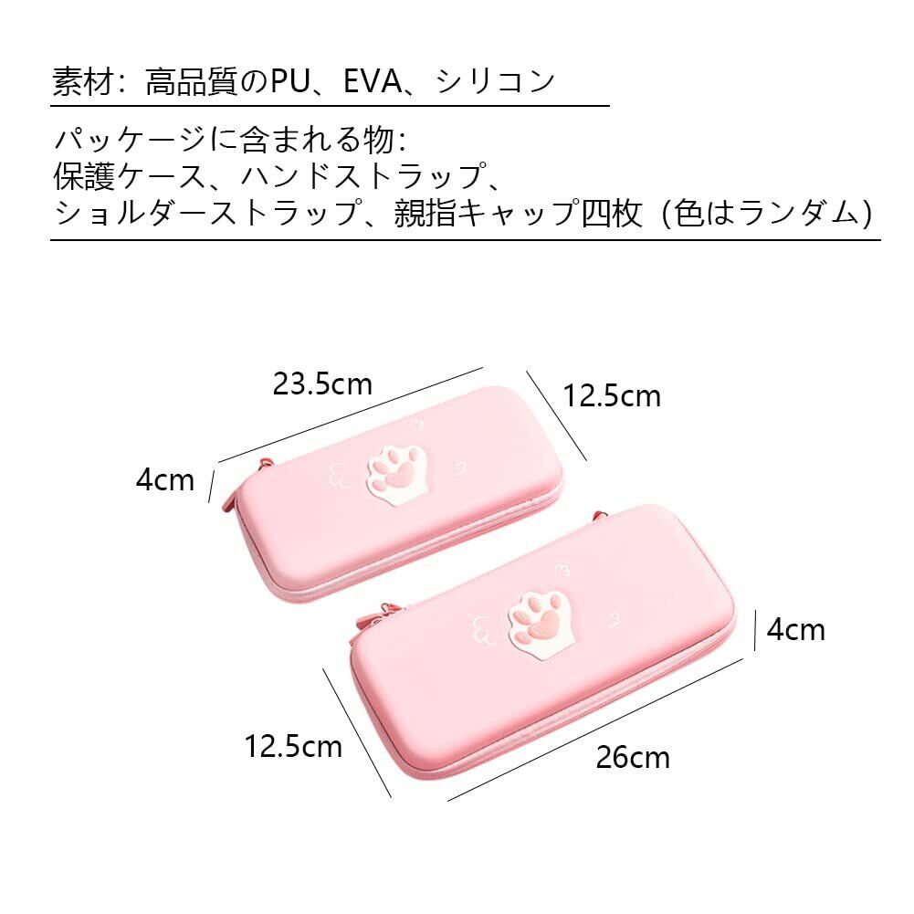 猫肉球型のNintendo Switch専用の保護ケース、素材:高品質のPU、EVA、シリコン、安全、高品質の素材を選びます。パッケージに含まれる物:保護ケース、ハンドストラップ、ショルダーストラップ、親指キャップ2枚(色はランダム)。スタイル:Switch専用・ピンク。サイズ:26*12.5*4CM。ケース重さ:192g。