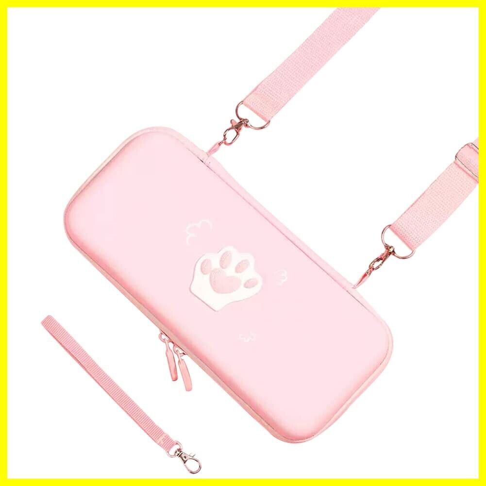 HIGHAWK Switch収納 Nintendo Switch用ケース ショルダー 保護 カバー 防水 猫肉球 可愛い 防塵 耐衝撃 ニンテンドー用 任天堂スイッチ カード収納(Switch専用・ピンク)