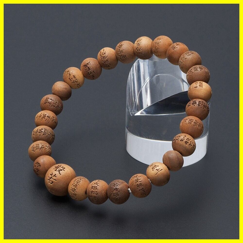 仏壇屋 滝田商店 特選腕輪念珠 般若心経彫りブレス インド白檀 8mm玉(尺二玉)◆数珠ブレスレット・数珠 ブレスレット・数珠ブレス・腕輪数珠・ブレス数珠・香木・お守り【滝田商店発行 証明書付】