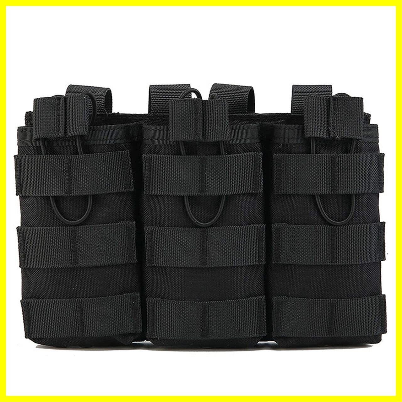 J-HARK サバゲー マガジンポーチ M4 M16 AK AR モール対応 トリプル 3連式 オープントップ 弾倉ポーチ サバイバルゲーム装備 (ブラック)