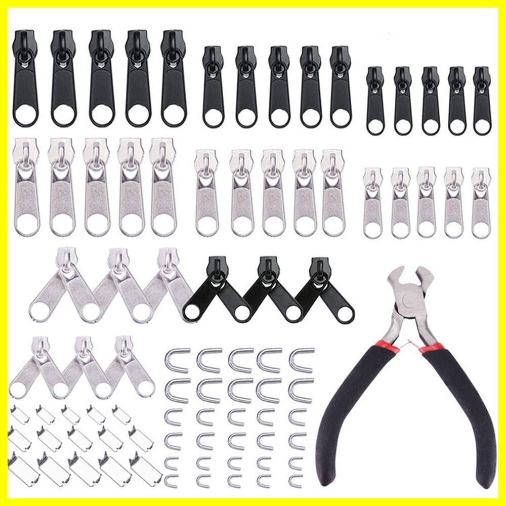 サムコス ジッパー ファスナー 修理キット 修理用ペンチ付き 縫製 交換用 diy ジッパー ファスナー引っ張り 多機能ジッパーヘッド 財布裁縫/手作り/服装/手芸バッグ/ジャケット/テント/荷物/寝袋 修理屋さんに適用 (約85pcs)