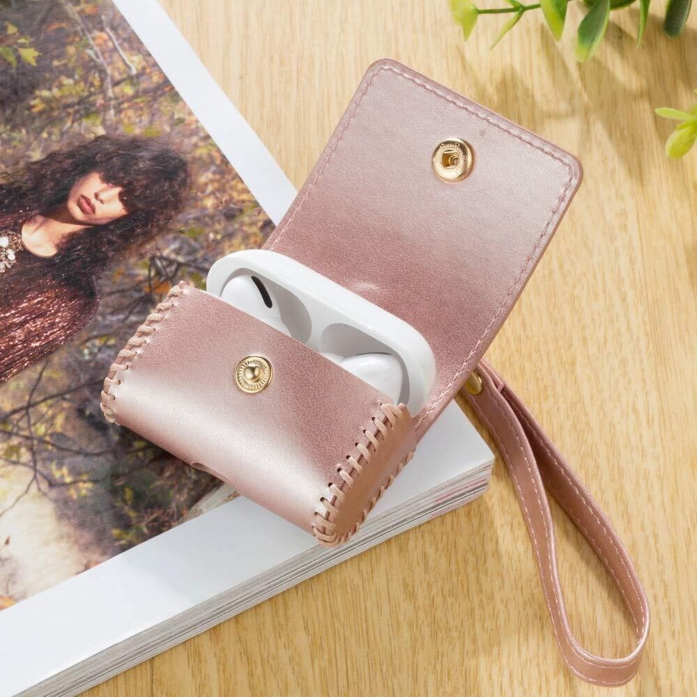 Blusodacy 保護ケース AirPods Proレザーケース、手作りのファッションヘッドフォン充電ケース 同色のハンドストラップ、高級手作り保護ケース付き 対応AirPods Pro/AirPods 第3世代用 (Color : Pink)
