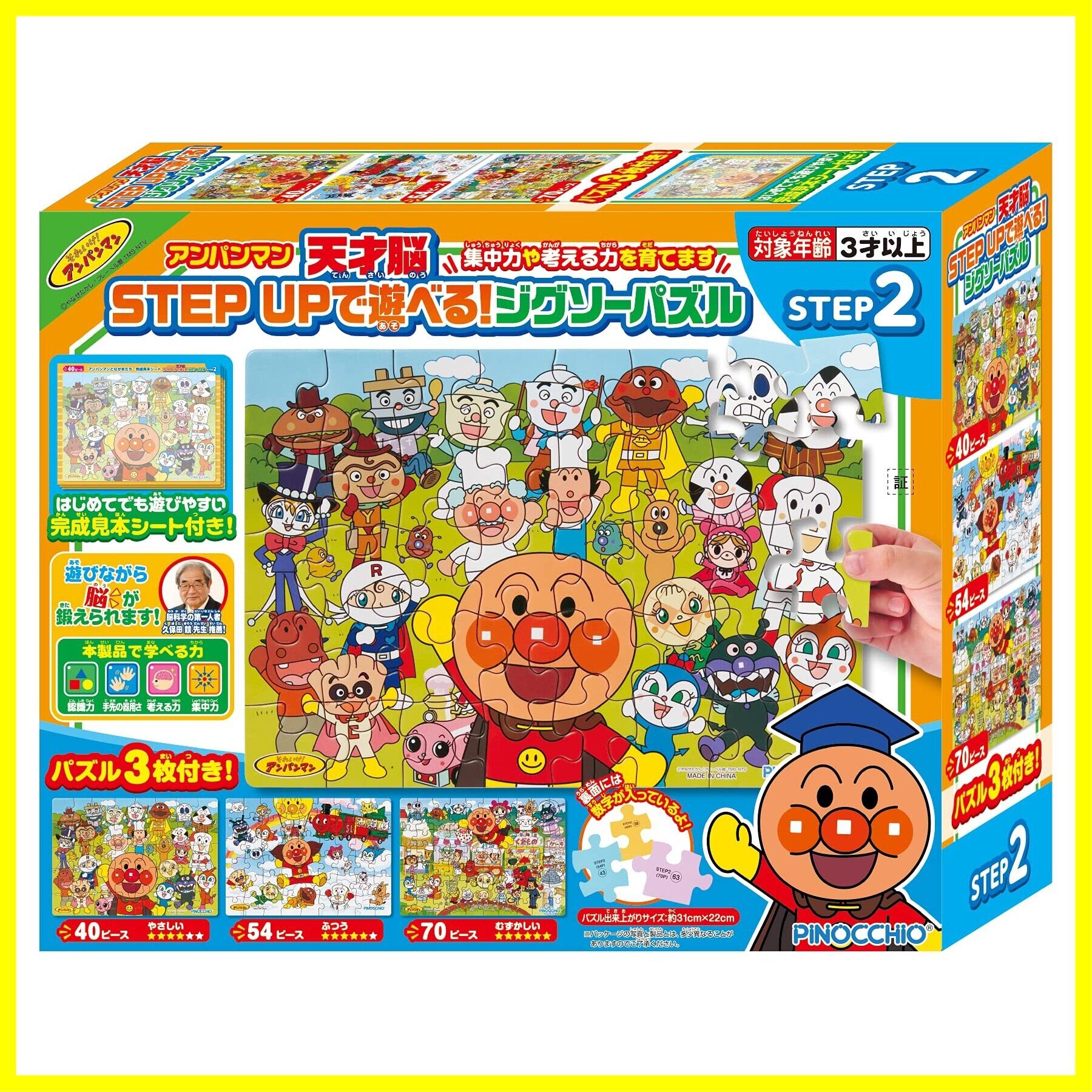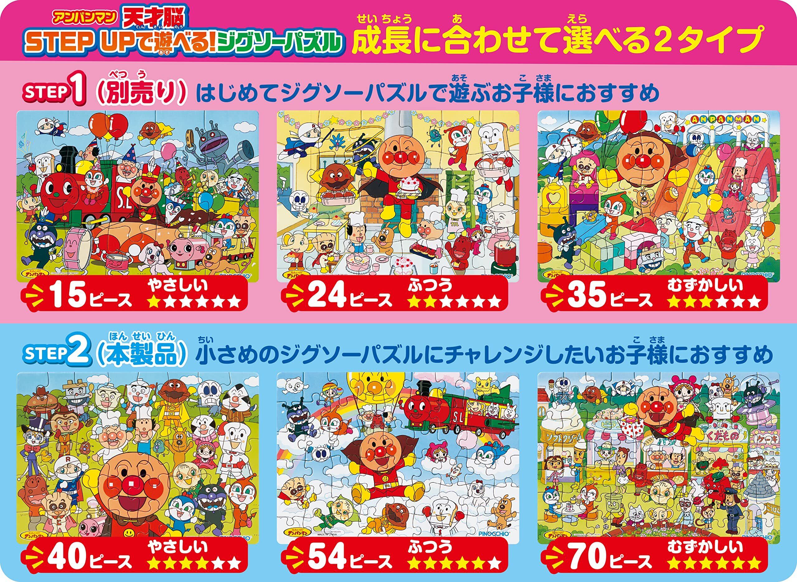 別売り「アンパンマン 天才脳 (仮)STEP UPで遊べる!ジグソーパズル STEP1」(15ピース・24ピース・35ピース)も販売。