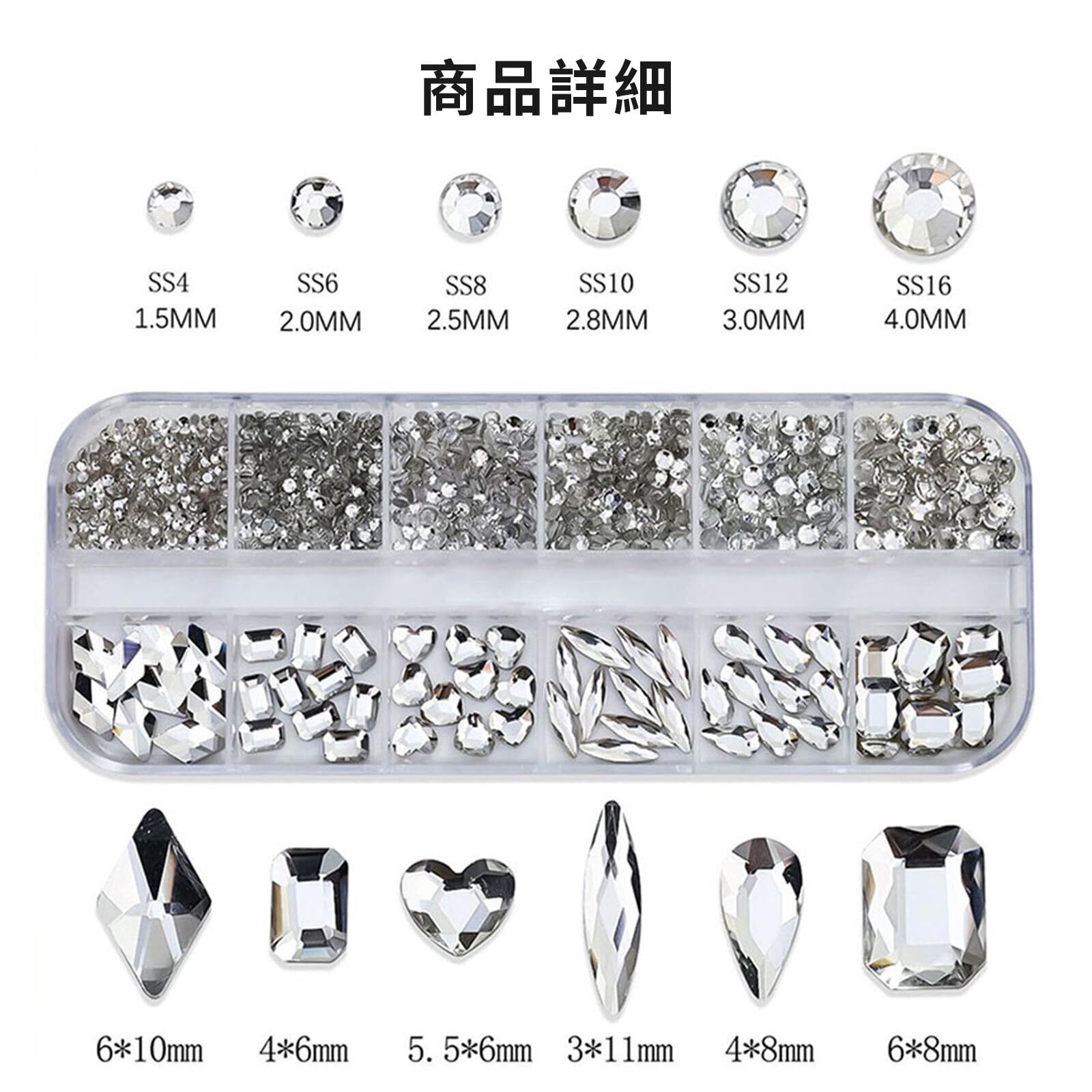 【商品仕様】ネイルアートラインストーンボックスには12個の小さな正方形があり、それぞれの正方形には異なる形と大きさのネイルアートラインストーンがあります。ネイルアートや小さなデコレーションに最適です。ピンセットとネイルアート用クレヨン付き。