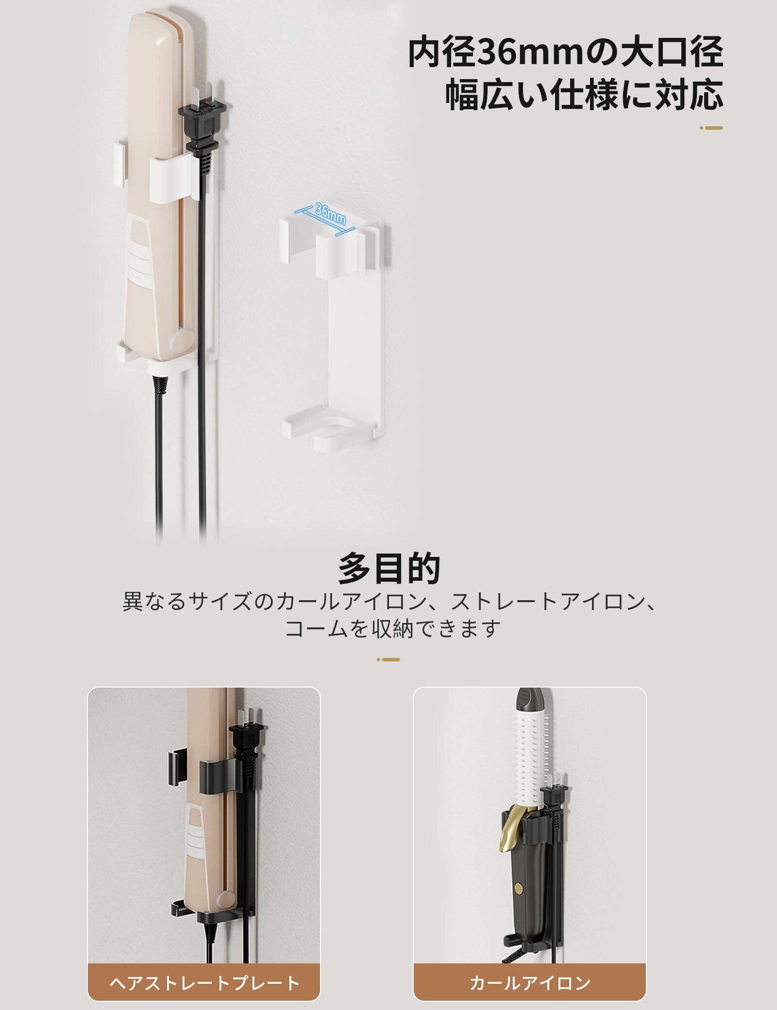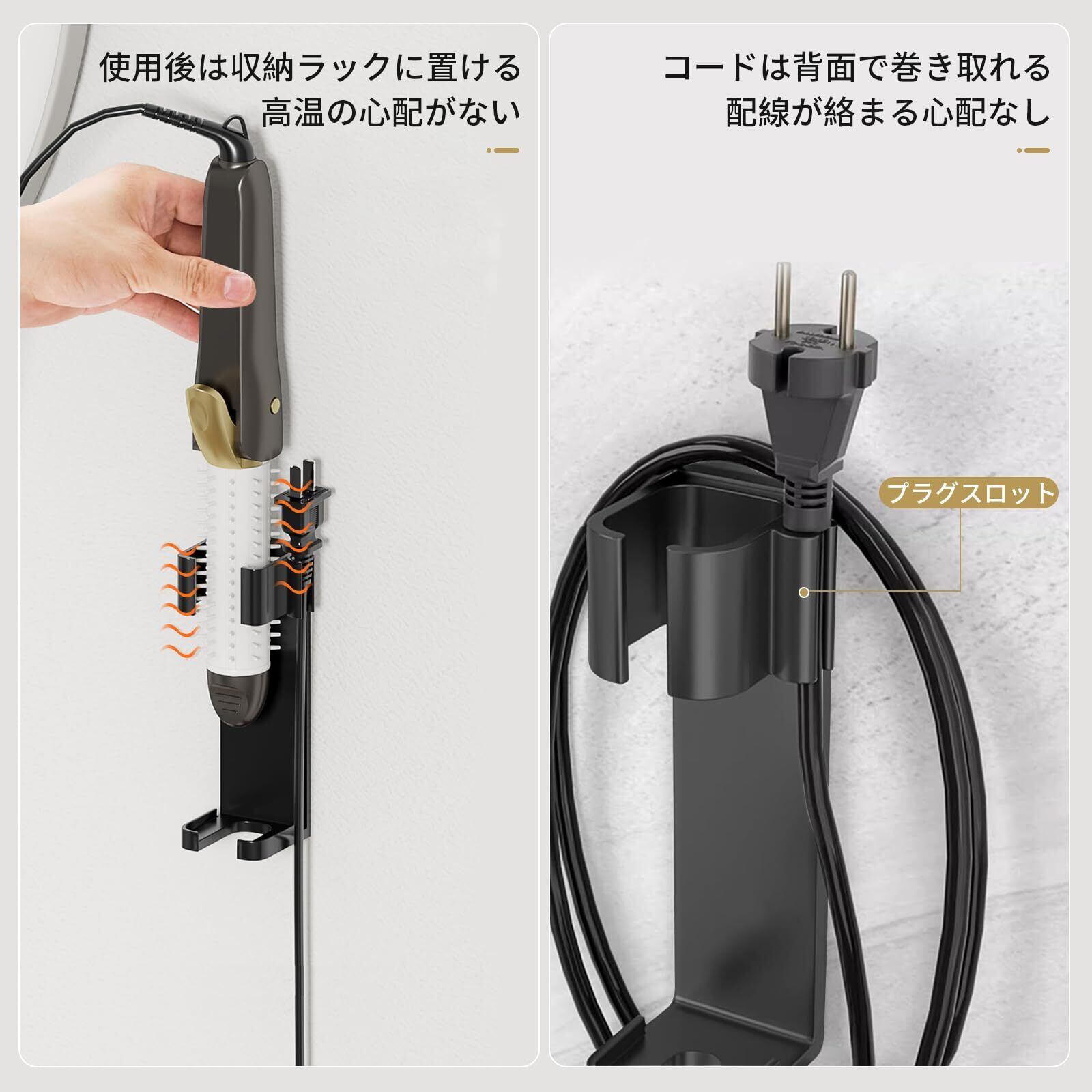【簡単設置】穴あけ不要。 耐熱 ヘアアイロンホルダー、自己粘着性の壁取り付け、穴を開ける必要がなく、直接貼り付けるだけです。ご注意:粗すぎる表面には適していません。