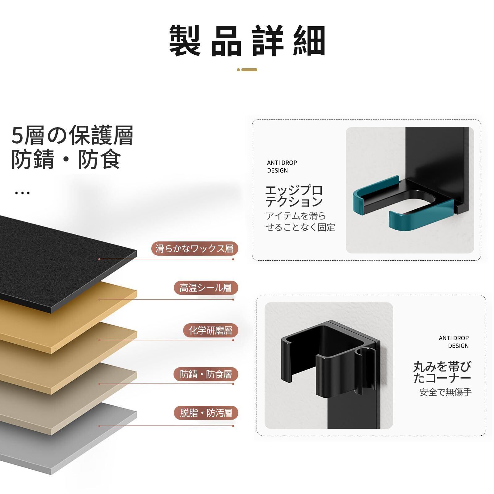 aninako ヘアアイロンホルダー 耐熱 ヘアアイロンホルダー ヘアアイロン収納 壁掛け ヘアアイロン置き 風呂場収納 打きな穴あけ不要