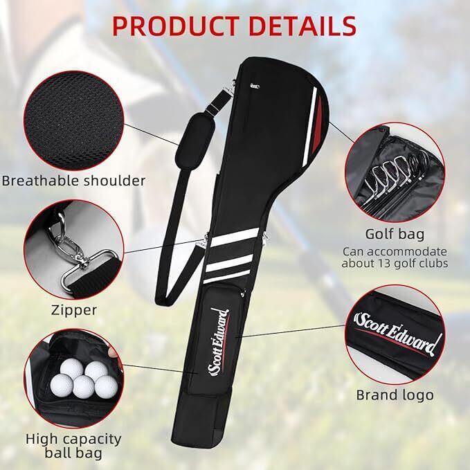 Scott Edward クラブケース 折りたたみ式ゴルフクラブキャリーバッグ ポータブルサンデーペンシルバッグ 軽量防水トレーニングケース 7~12本のクラブを収納可能